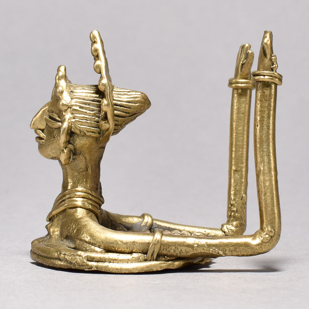 Elevate your space with the captivating presence of the Tribal Art Lady Bust. This striking metal sculpture from the Orissa region of India showcases a stylized female figure with elongated, graceful arms and a crowned head, radiating an aura of mysticism and cultural richness.Bring the enchanting essence of ancient tribal art into your living space. The Tribal Art Lady Bust is a stunning conversation piece that commands attention and infuses your decor with an intriguing, multicultural vibe. Display it prominently to elevate your interior and transport guests to faraway lands with its captivating presence. This exquisite sculpture is a must-have for art enthusiasts, cultural collectors, and anyone seeking to imbue their home with the spirit of timeless craftsmanship and timeless beauty. Embrace the allure of the Tribal Art Lady Bust and let it become a cherished centerpiece in your sacred space. Handcrafted metal construction from the renowned artisans of Orissa