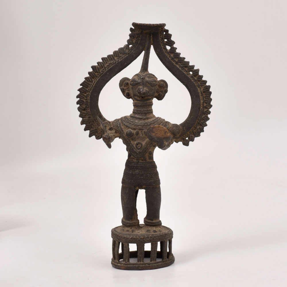 Discover the timeless beauty and cultural significance of this breathtaking brass tribal god figure. Rooted in the revered Dhokra Art tradition, this captivating statue is a testament to the enduring power of ancient craftsmanship. Each intricate detail is meticulously sculpted, from the abstract, geometric forms to the intricate patterns that dance across the surface. The result is a mesmerizing work of art that commands attention and ignites the imagination. Whether displayed on a mantle, side table, or bookshelf, this brass deity will infuse your space with an air of mystery and reverence. This tribal god figure is a must-have for décor enthusiasts, art collectors, and anyone seeking to elevate their living space with timeless elegance. Embrace the rich cultural heritage and spiritual significance of this striking brass statue, and let it inspire deeper reflection on the enduring wisdom of the ancients.