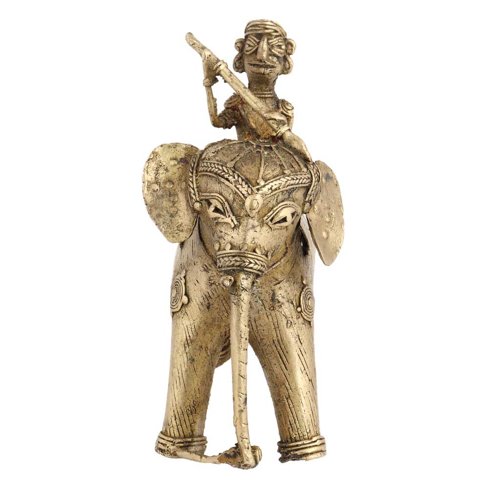 Tribal Brass Elephant Rider Handcrafted Statue made by local artisans is Best For Collection, Home Décor, Personal Gifting. In Perfect Decorative Condition. Great for your interiors. Ready To Be Part Of Your collection.