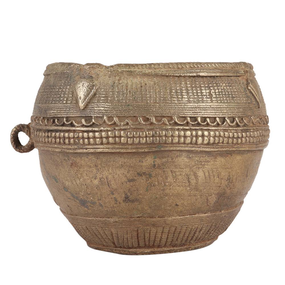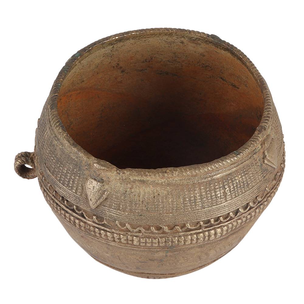 Brass tribal grain weighing pot with one sided ring holder is used as a planter.  Keep it indoors or outdoors anywhere you want to bring splendor and flare to your décor. This pot is ideal for use as a planter, waste basket, decoration, or lovely storage. U se it as a gift for friends and family.