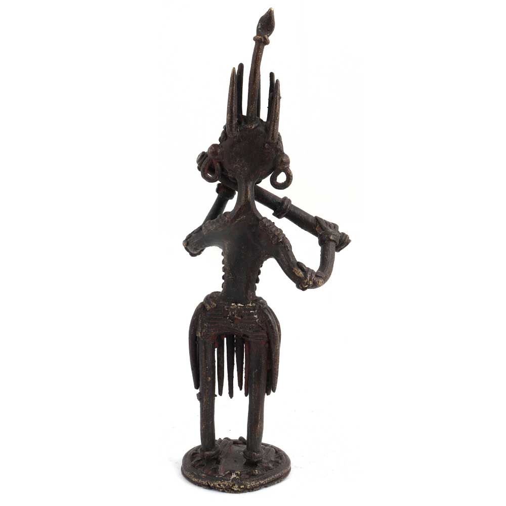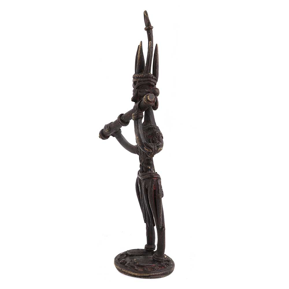 Tribal Brass Statue Playing Flute of Musician is a Great Pick to Decorate Living Room of Your Home. Shown Here is a Man Playing An Indian Classical Musical Instrument flute, a Clear Sign of Celebration and Good Times. a Good Decoration Purpose Makes a Great Gift Idea for An Indian Classical Music Lover.