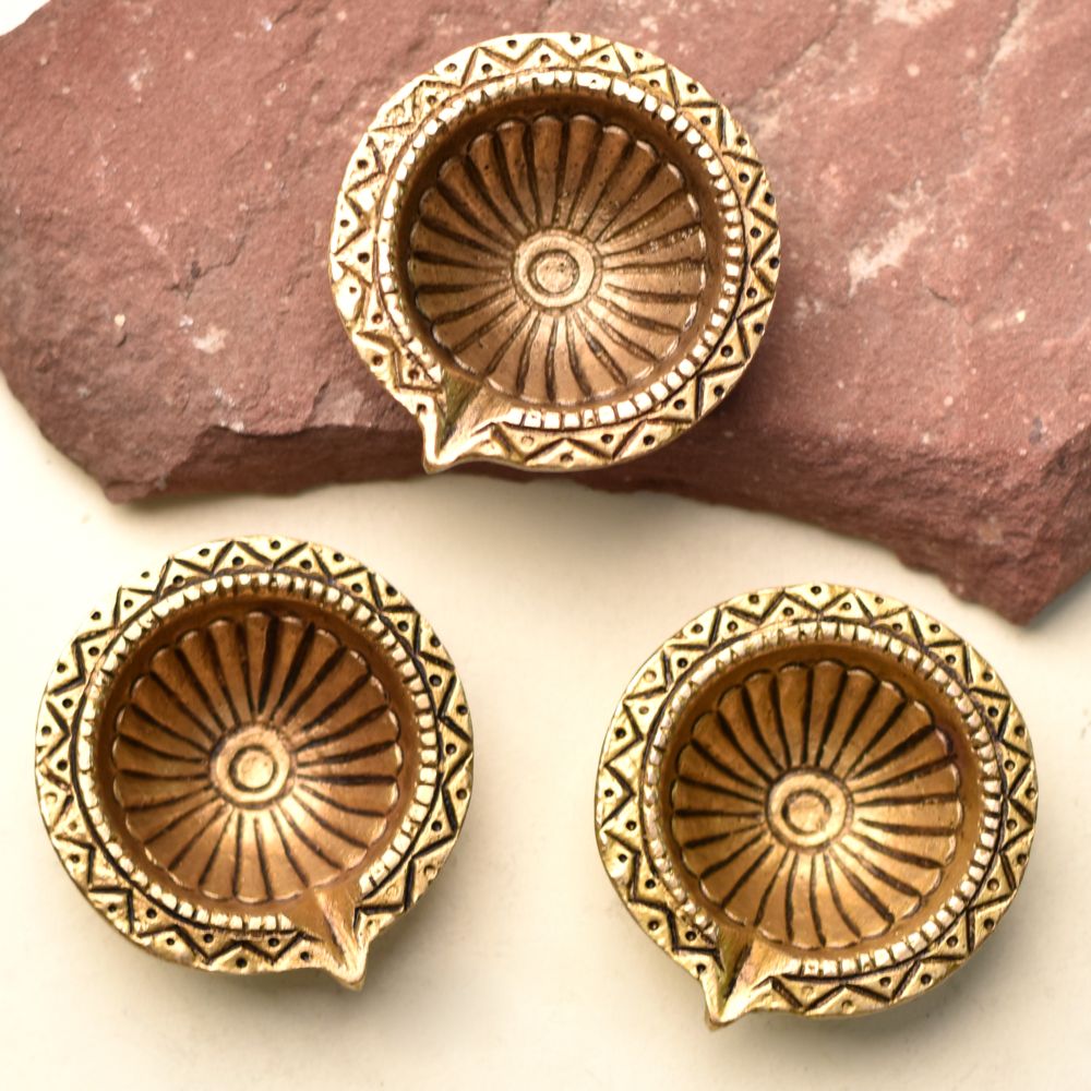 Celebrate heritage and light with this Tribal Design Round Brass Diwali Diya, a handcrafted deepak that blends ethnic artistry with traditional devotion. Cast in solid brass with a polished golden finish, it features a round tribal-inspired design symbolizing unity, prosperity, and divine blessings. Compact yet elegant, it’s perfect for puja rituals, festive décor, and cultural gifting.