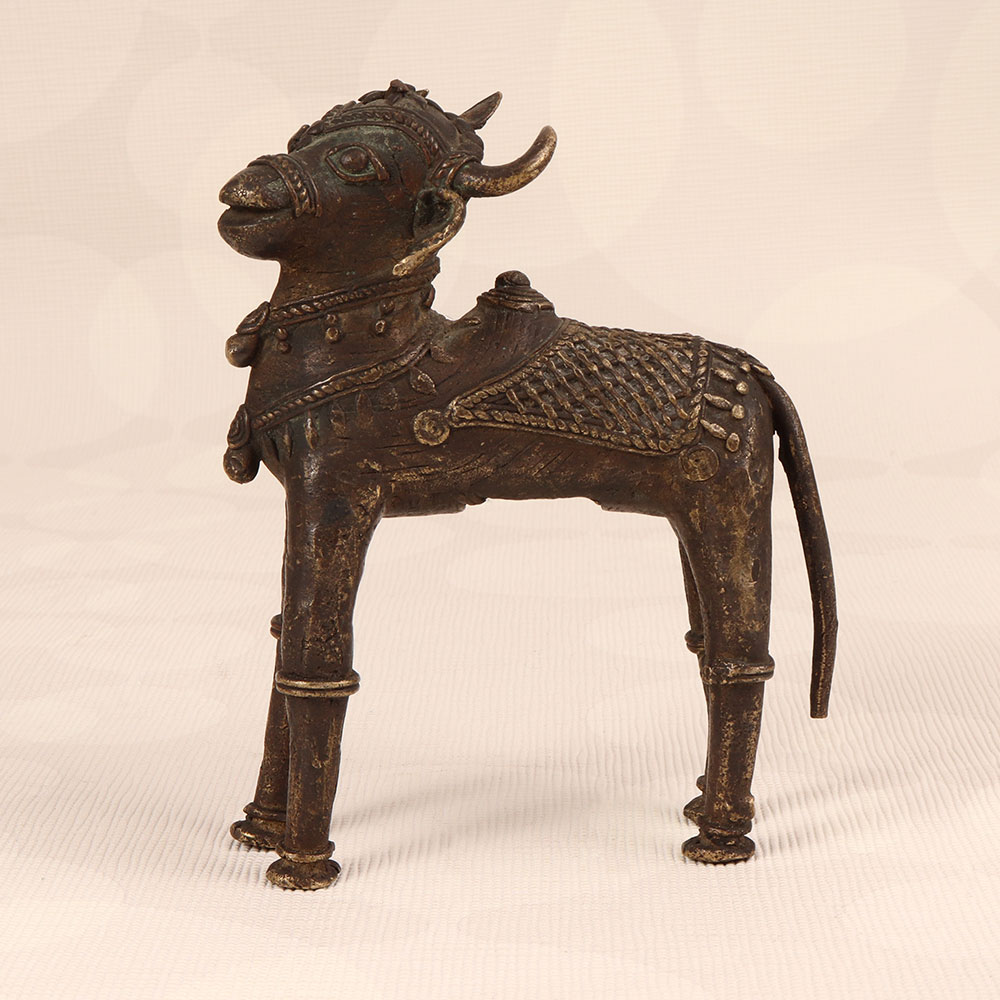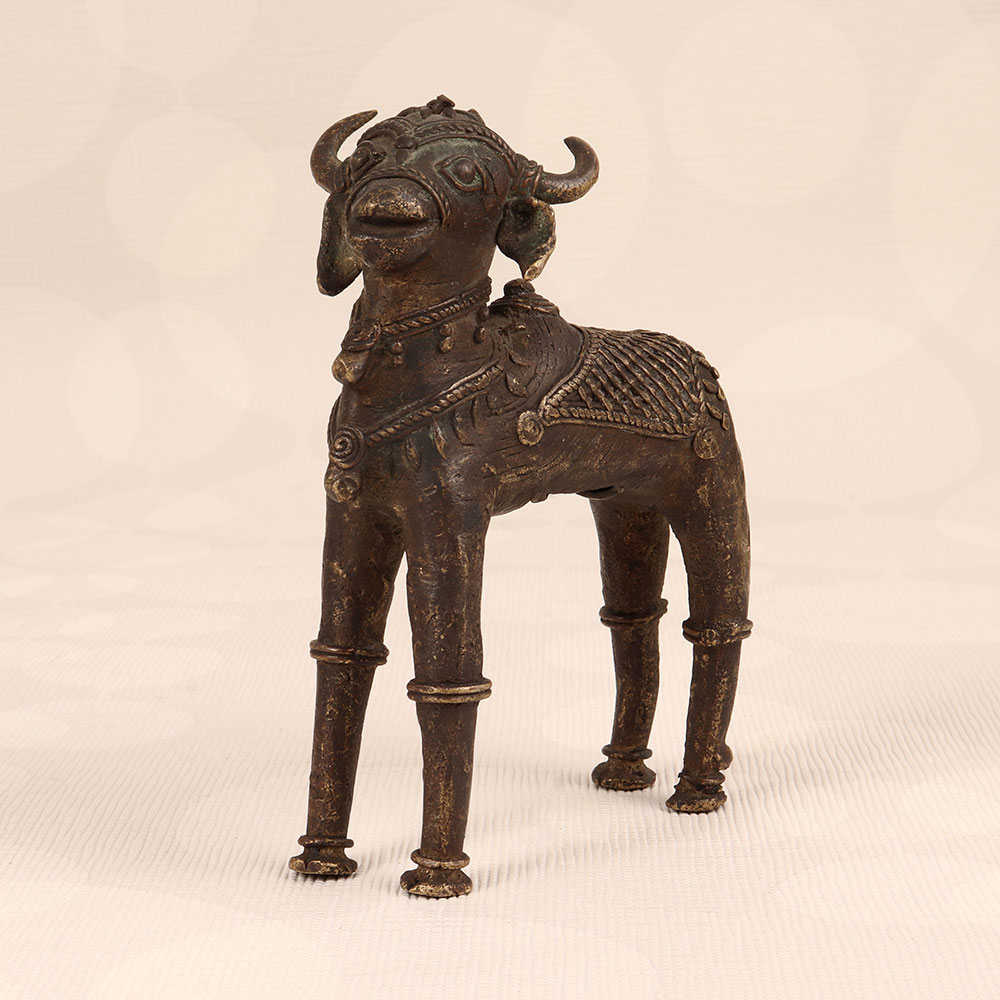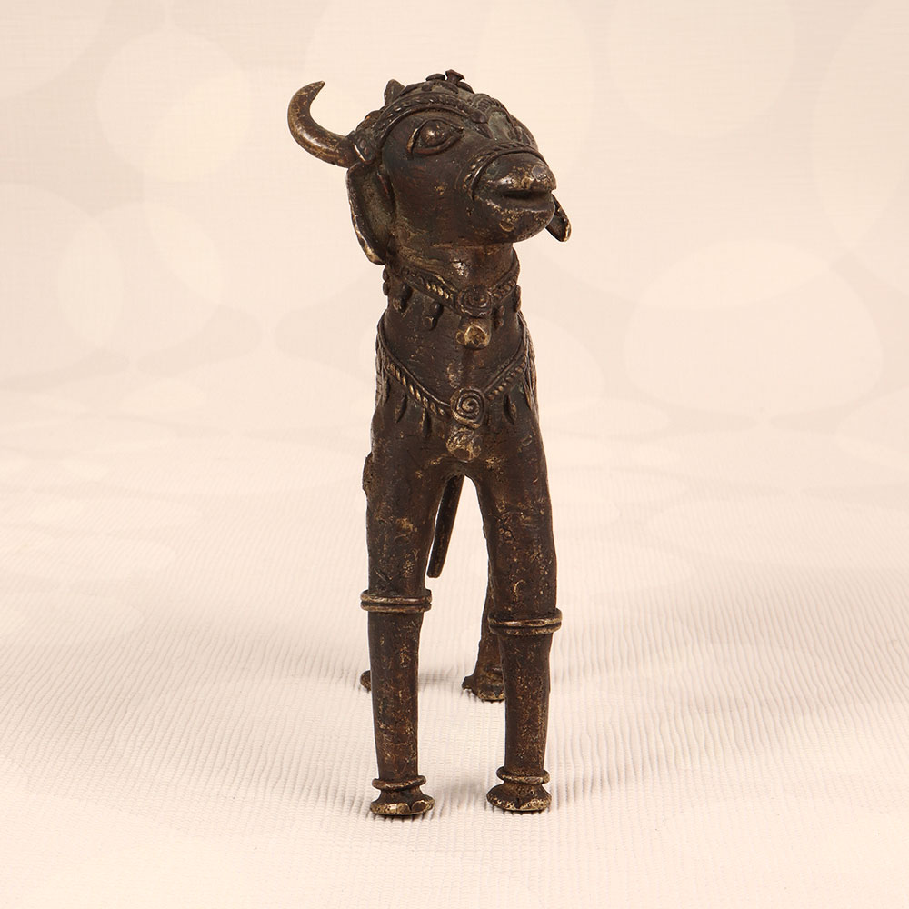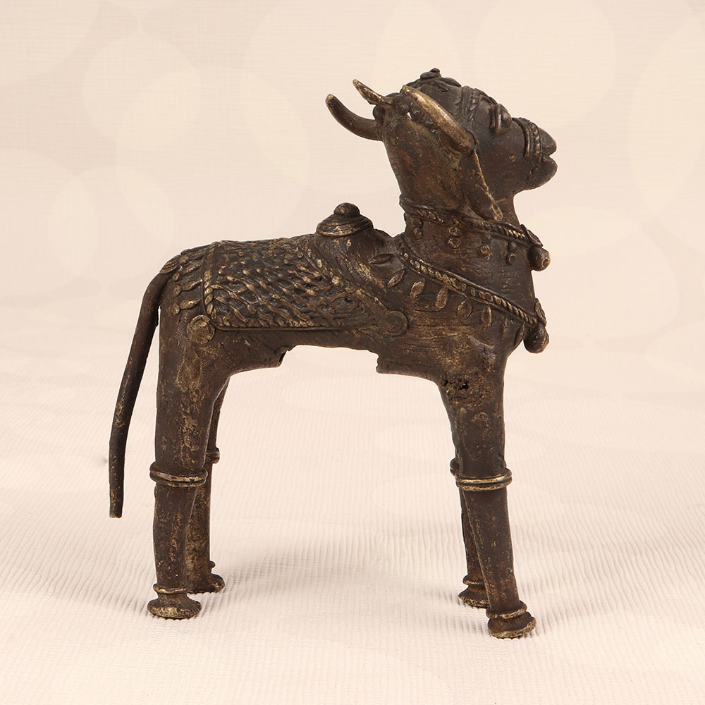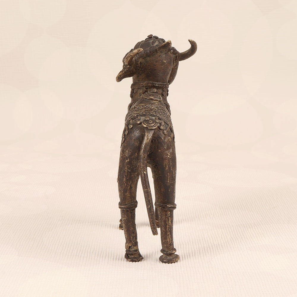 Enhance your space with the timeless charm of our Vintage Brass Nandi Statue that is a symbol of divine strength and devotion. Meticulously handcrafted by talented Indian artisans in Tribal Art, this exquisite piece showcases a dark finish that adds an air of mystique and antiquity. Nandi, the revered vahana (vehicle) of Lord Shiva, is beautifully captured in high-quality brass, embodying the rich cultural heritage of India. Perfect for adorning your home, office, restaurant, hotel, or cafe, this statue seamlessly blends spirituality with artistry. Create a sacred haven by placing it in your prayer room, or use it as a captivating decorative element to infuse your space with an aura of serenity and grace. This vintage masterpiece is not just a striking addition to your collection; it also makes for a thoughtful and auspicious gift for your family, friends or relatives on special occasions, festivals, or moments of celebration. Immerse yourself in the spiritual essence and aesthetic allure of this handmade brass masterpiece.