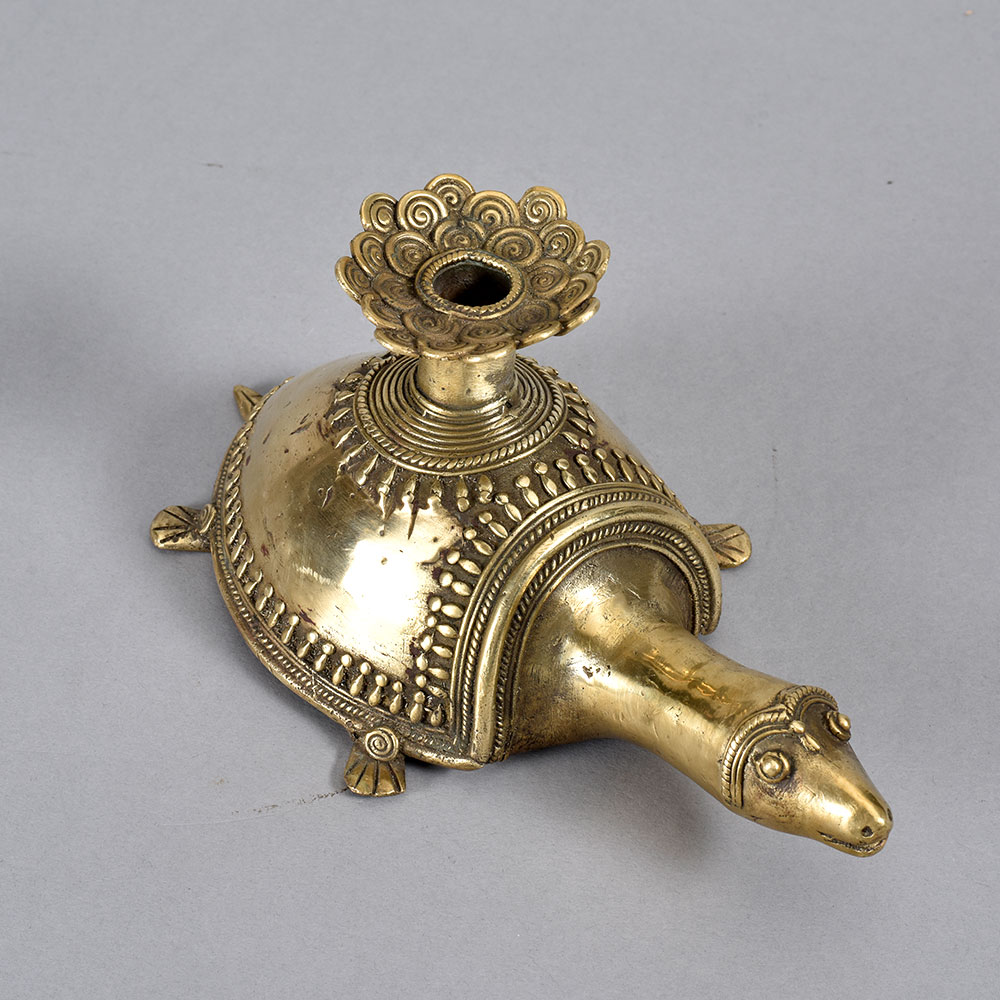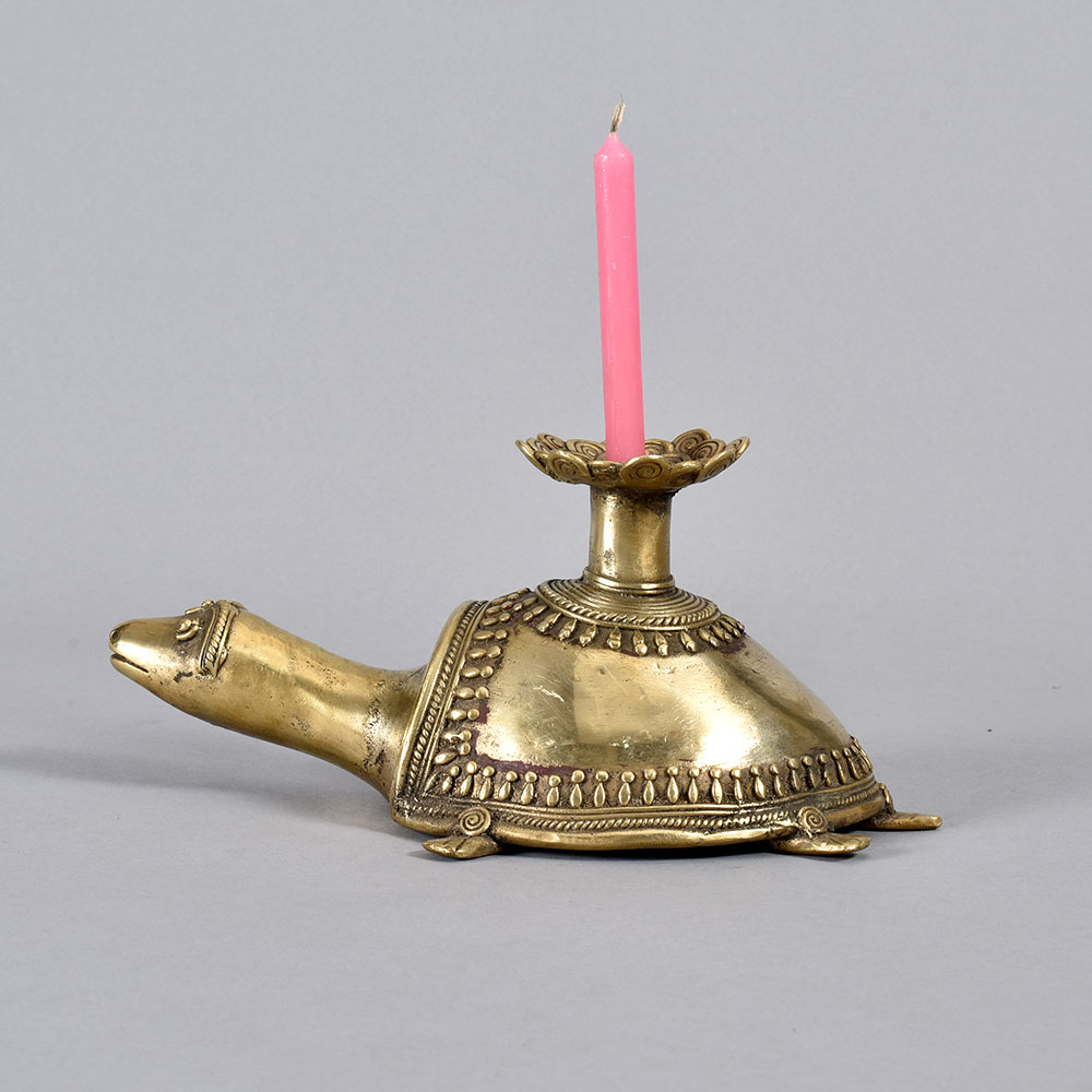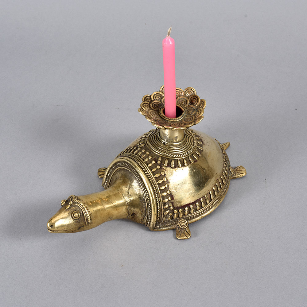 Bring a touch of enchanting, earthy elegance to your home with the Vintage Folk Brass Turtle Candle Holder. This stunning piece of tribal art will captivate all who lay eyes on it. The Vintage Folk Brass Turtle Candle Holder is more than just a candle holder - it's a work of art that transports you to faraway, mystical lands. The turtle design is a revered symbol in many cultures, representing longevity, protection, and wisdom. Display this piece in your living room, bedroom, or anywhere you want to infuse your space with an earthy, spiritual ambiance. This candle holder makes a thoughtful housewarming, birthday, or holiday gift for anyone who appreciates unique home decor with a global, bohemian flair. It's the perfect accent piece to complement your collection of tribal textiles, woven baskets, carved wooden sculptures, and other global-inspired décor. Embrace the beauty of the natural world and let the Vintage Folk Brass Turtle Candle Holder elevate your space.