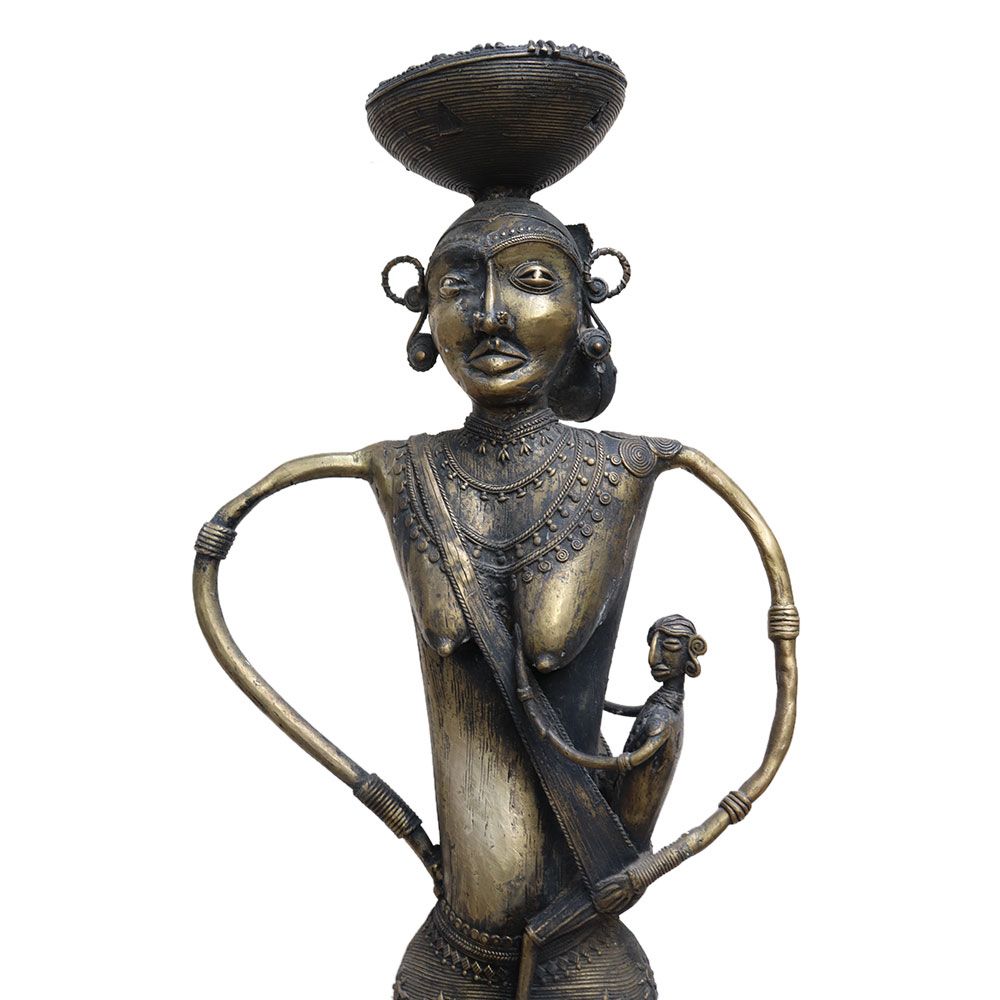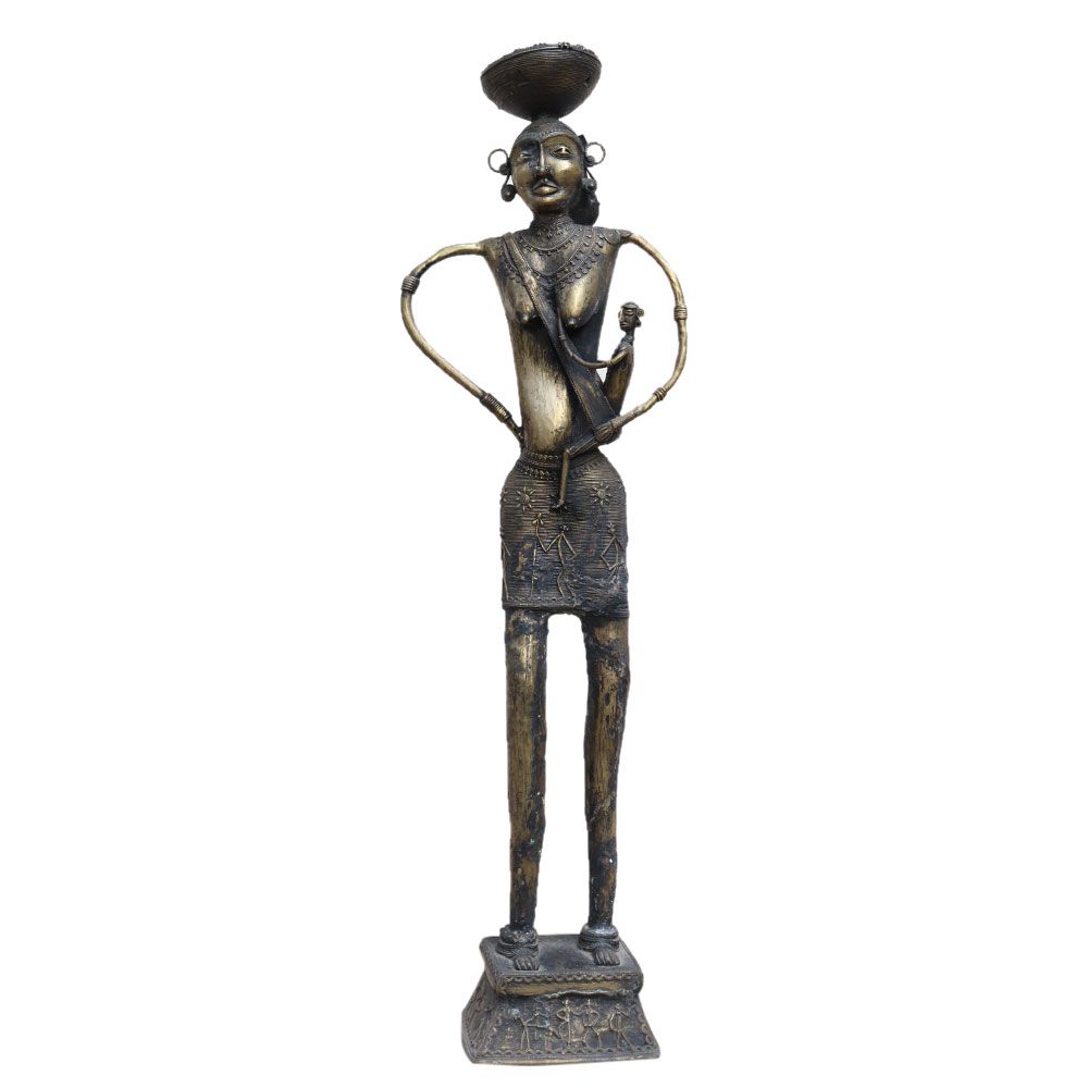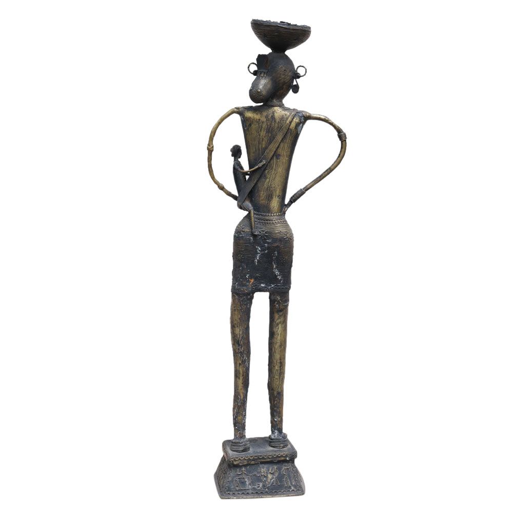 A primitive lady dragging his child around by holding him on her waist. A perfect statue of village life carved in brass metal looks very appealing and would make an excellent decorative items item. Use it yourself or gift it to your friends and relatives.