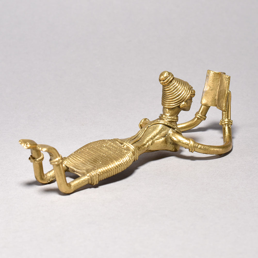 Embrace the captivating beauty of tribal artistry with this stunning metal sculpture depicting a serene woman lost in the pages of a book.Lose yourself in the captivating world of this tribal art piece. The delicately sculpted woman, adorned in tribal motifs, embodies the tranquil pleasure of reading and quiet reflection. Crafted with meticulous attention to detail, this metal sculpture brings the rich cultural heritage of Orissa to life in your own home. Whether displayed on a shelf, table, or mantel, this striking work of art will transport you to a serene, meditative state every time you gaze upon it. This stunning tribal sculpture is a must-have for anyone who appreciates fine art, values cultural heritage, and seeks to infuse their space with a sense of peaceful contemplation. Display this exquisite piece and let it become a cherished focal point that sparks wonder and inspiration in all who behold it. Handcrafted from durable metal