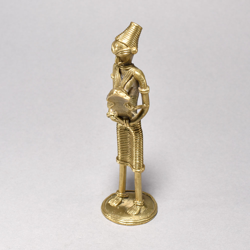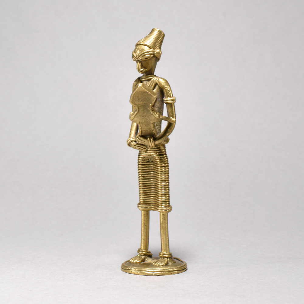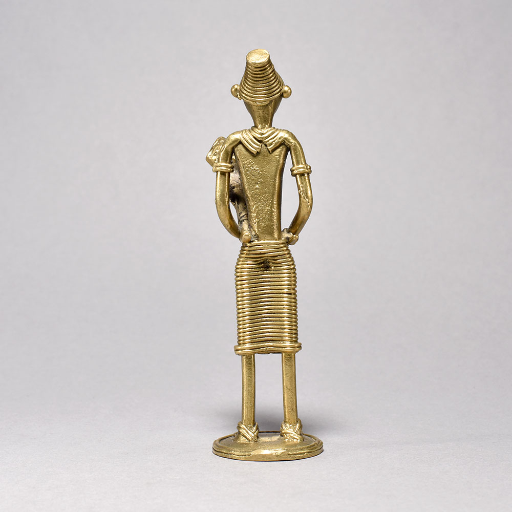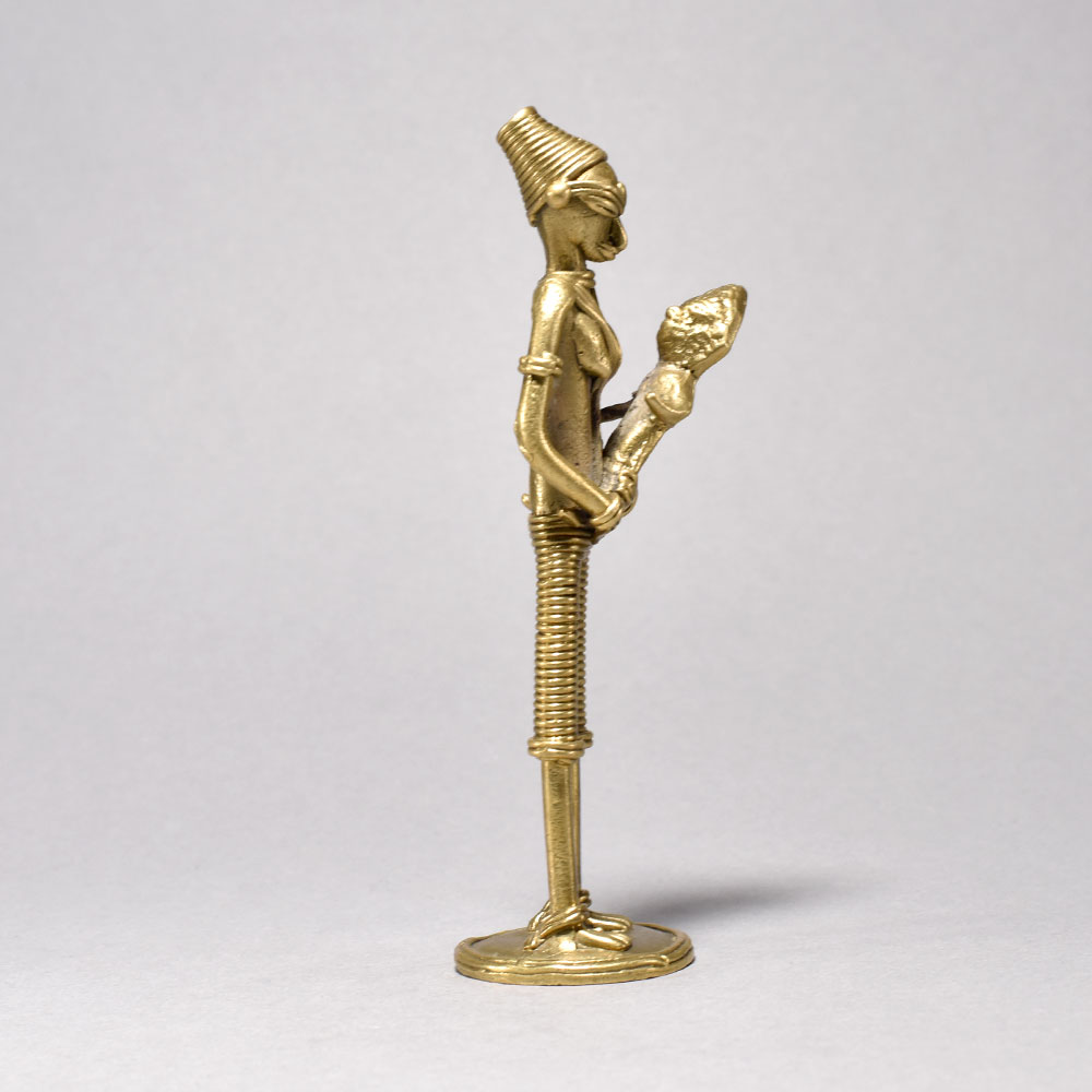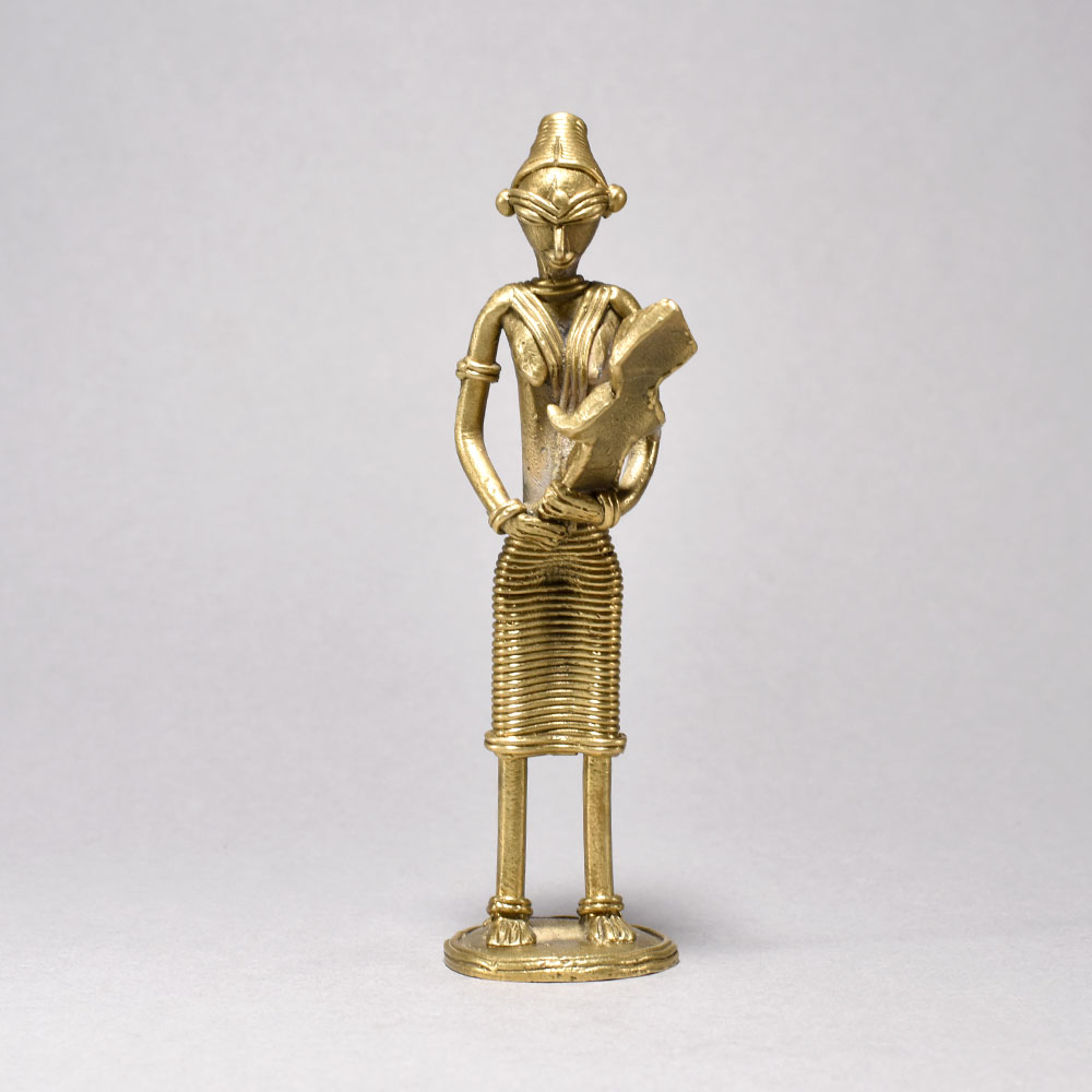 Unlock the Vibrant Spirit of Tribal Culture with this Stunning Artwork.This breathtaking metal sculpture transports you to the heart of tribal Orissa, where the rhythms of tradition and the bond between mother and child are everlastingly preserved. Crafted with meticulous attention to detail, each figure emanates a sense of quiet dignity and profound connection to the land. Display this captivating artwork to infuse your space with the vibrant spirit of indigenous culture and remind yourself of life's most precious moments. Handcrafted metal sculpture depicting tribal women in traditional dress This timeless piece is handcrafted by skilled artisans using time-honored techniques, ensuring each creation is truly one of a kind. Its versatile design makes it suitable for living rooms, bedrooms, offices, or meditation spaces, bringing a sense of heritage and style wherever it is displayed. This timeless piece is handcrafted by skilled artisans using time-honored techniques, ensuring each creation is truly one of a kind. Its versatile design makes it suitable for living rooms, bedrooms, offices, or meditation spaces, bringing a sense of heritage and style wherever it is displayed.