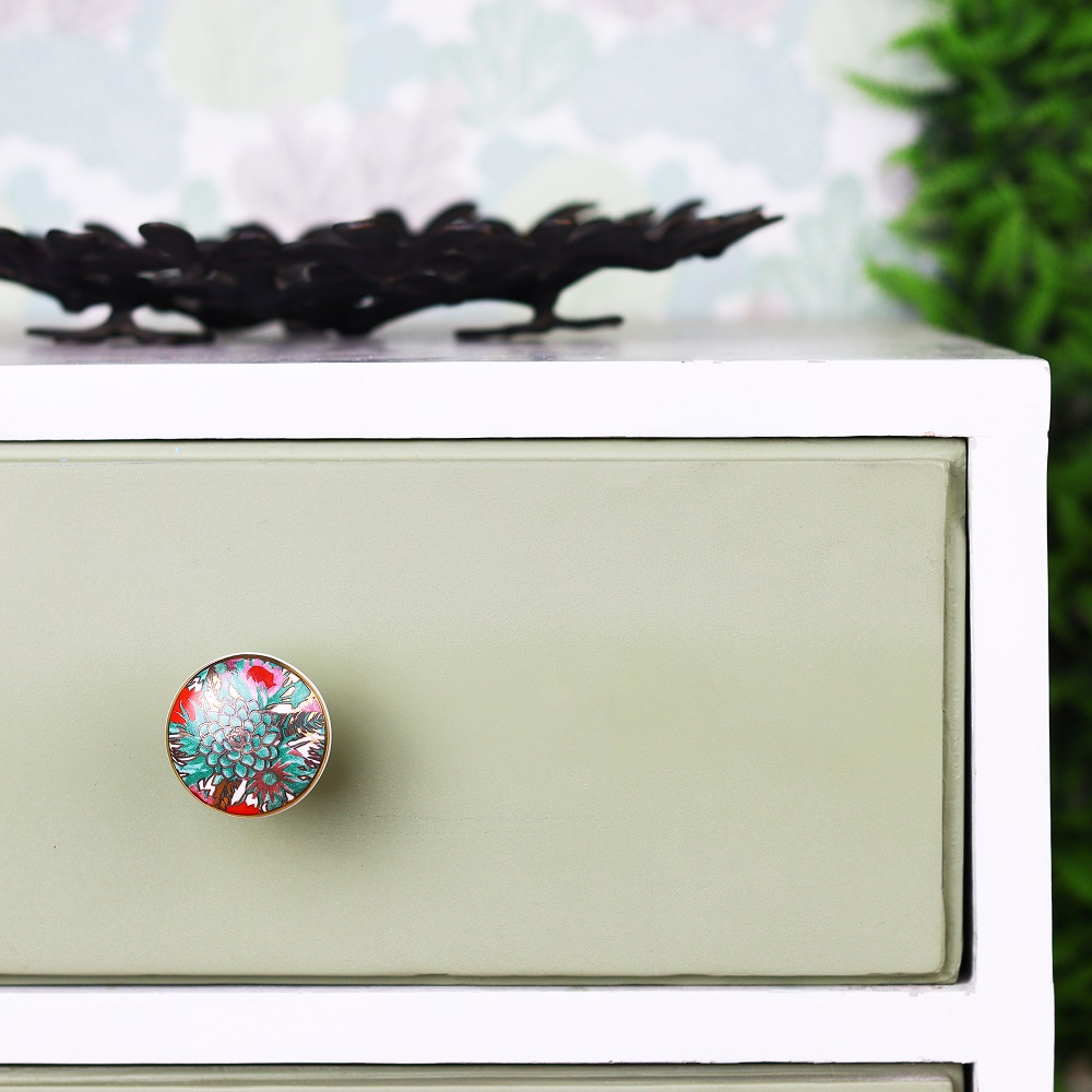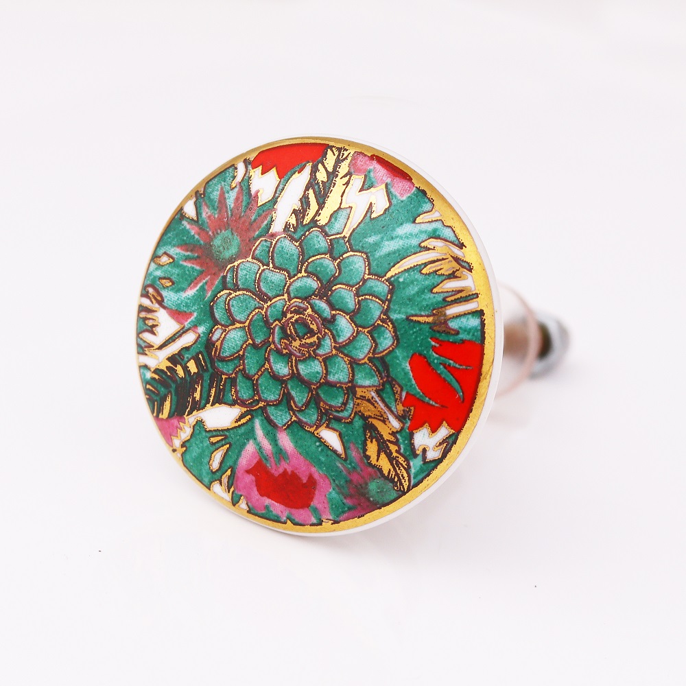 No matter if your home decor leans coastal, bohemian, or traditional, the Tropical Floral Ceramic Furniture Knob with Gold Work fits seamlessly into various styles. Use them on bedroom furniture, kitchen cabinets, bathroom drawers, or any piece that could use a splash of color and style.