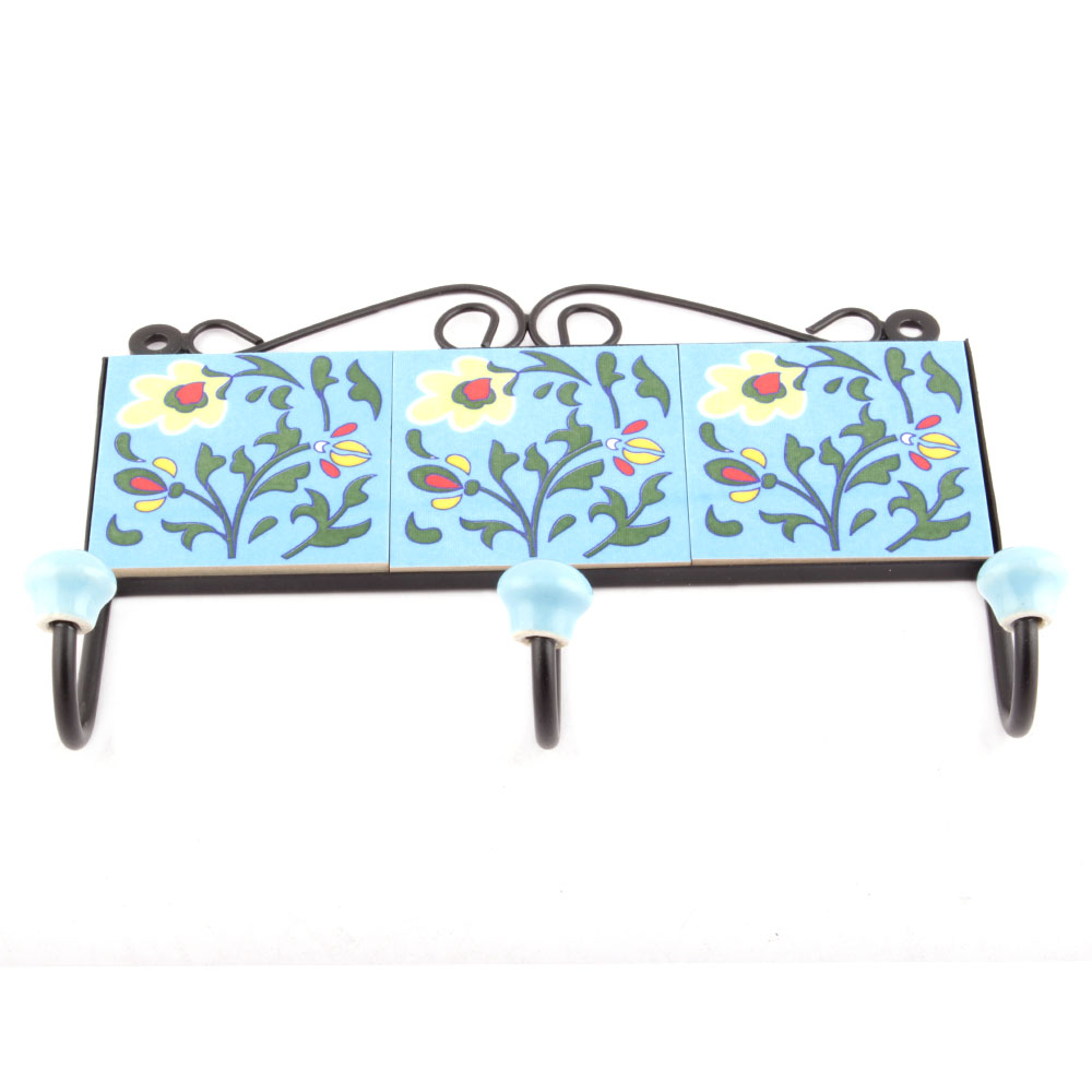 Turquoise And Forest Green Leaf Floral Tiles Hooks Online. When Put on Wall or Cabinet it is an Art in itself. The Metal Part of this Hook is Black Powder Coated.