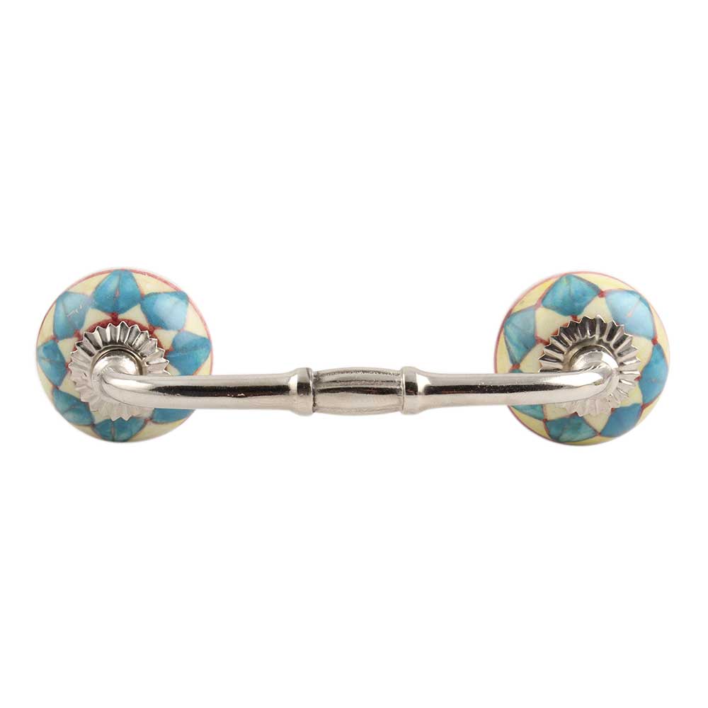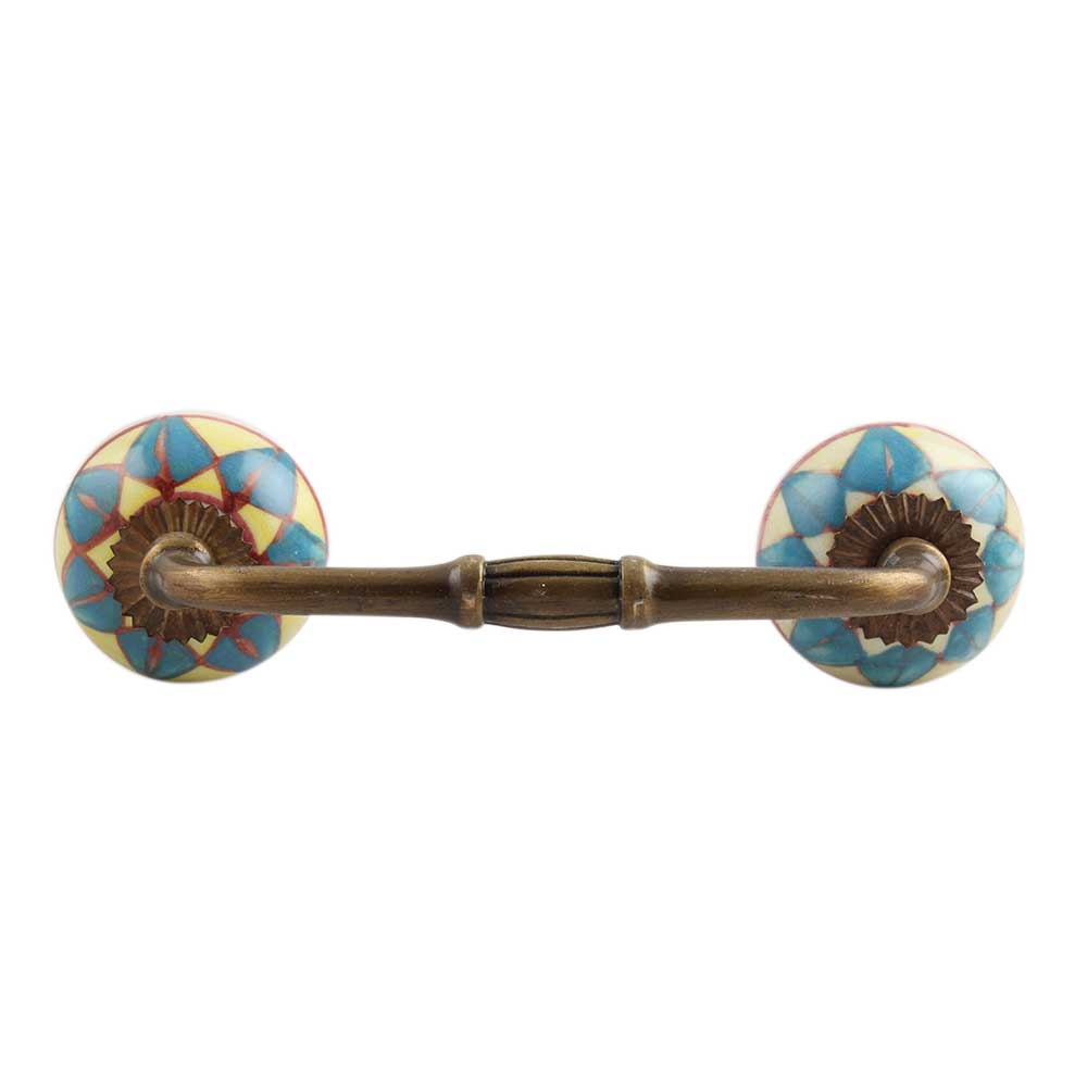 Turquoise and Yellow Ceramic Bridge Handle. Ideal for Drawer, Dresser, Cabinet, Wardrobe, Cupboard and Almirah.