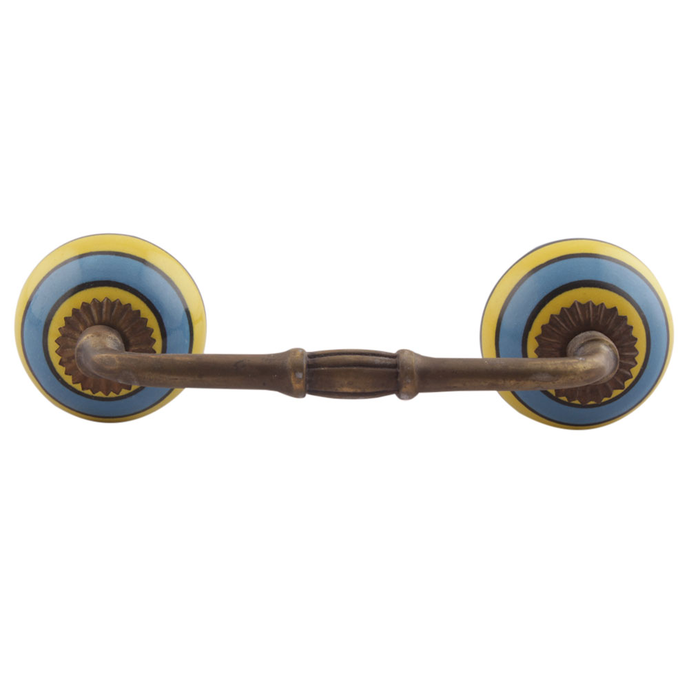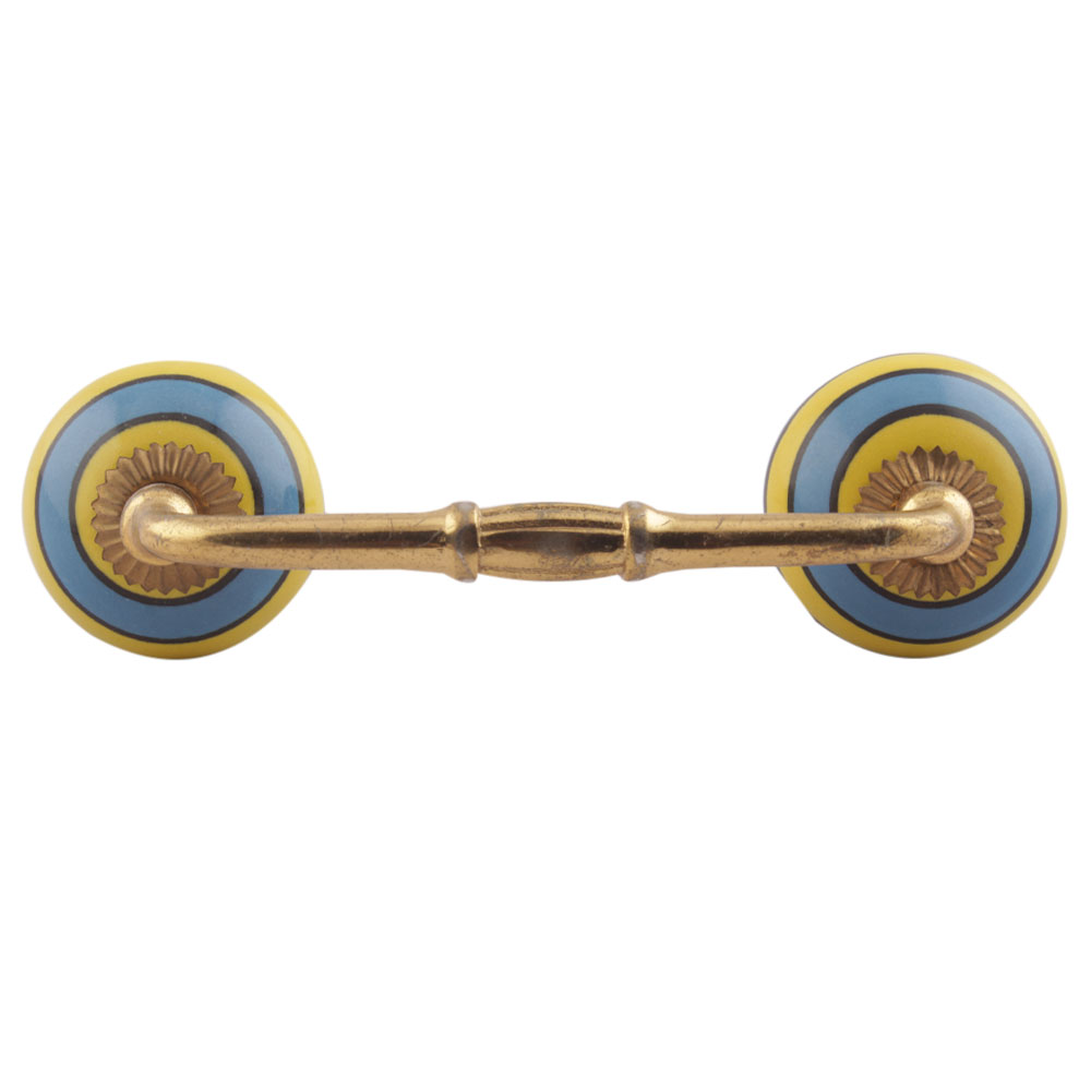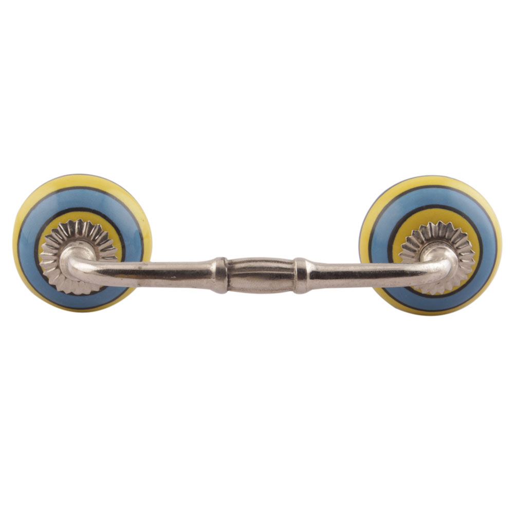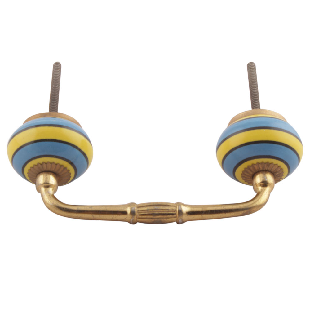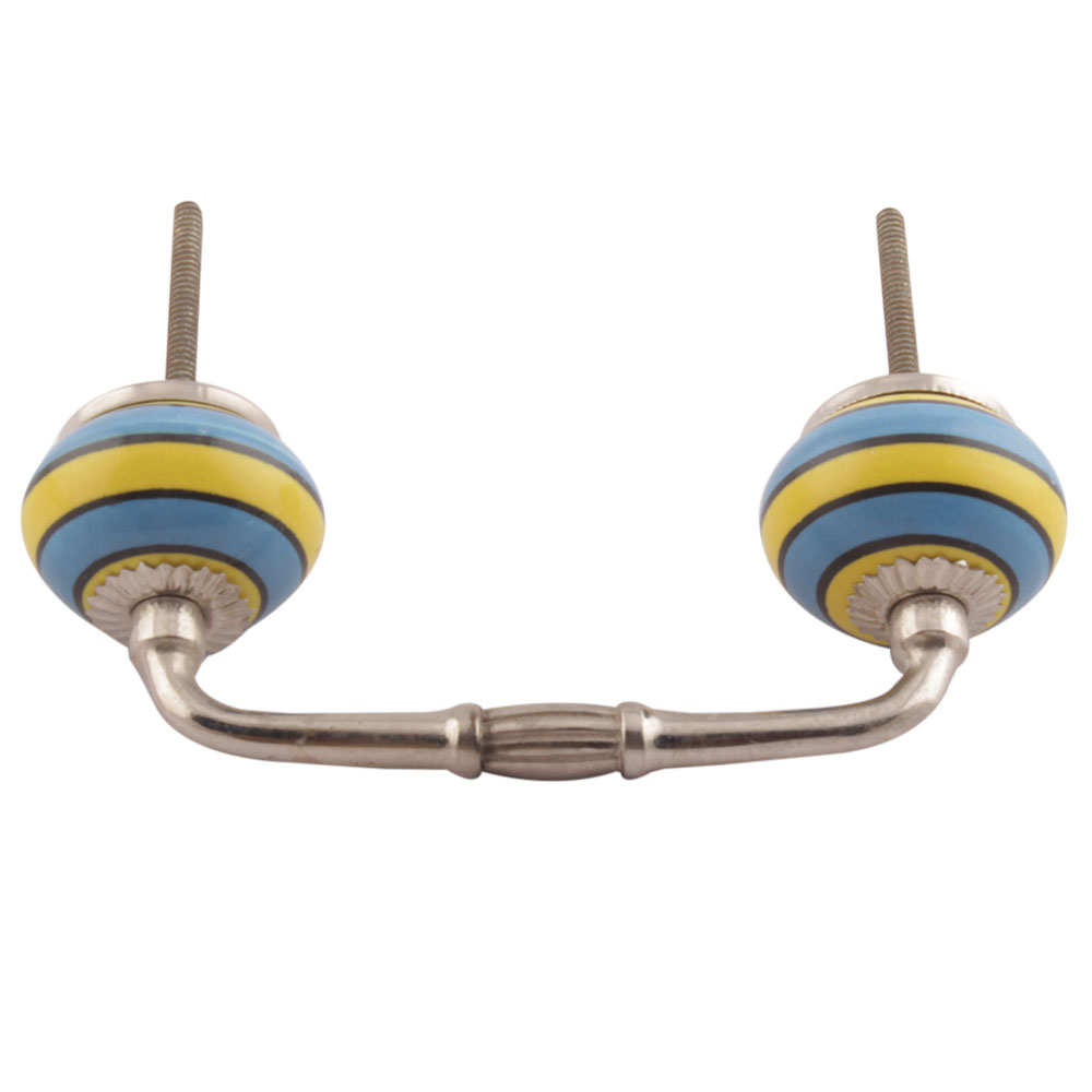 Turquoise And Yellow Striped Ceramic Bridge Handles. Ideal for Drawer, Dresser, Cabinet, Wardrobe, Cupboard and Almirah etc.