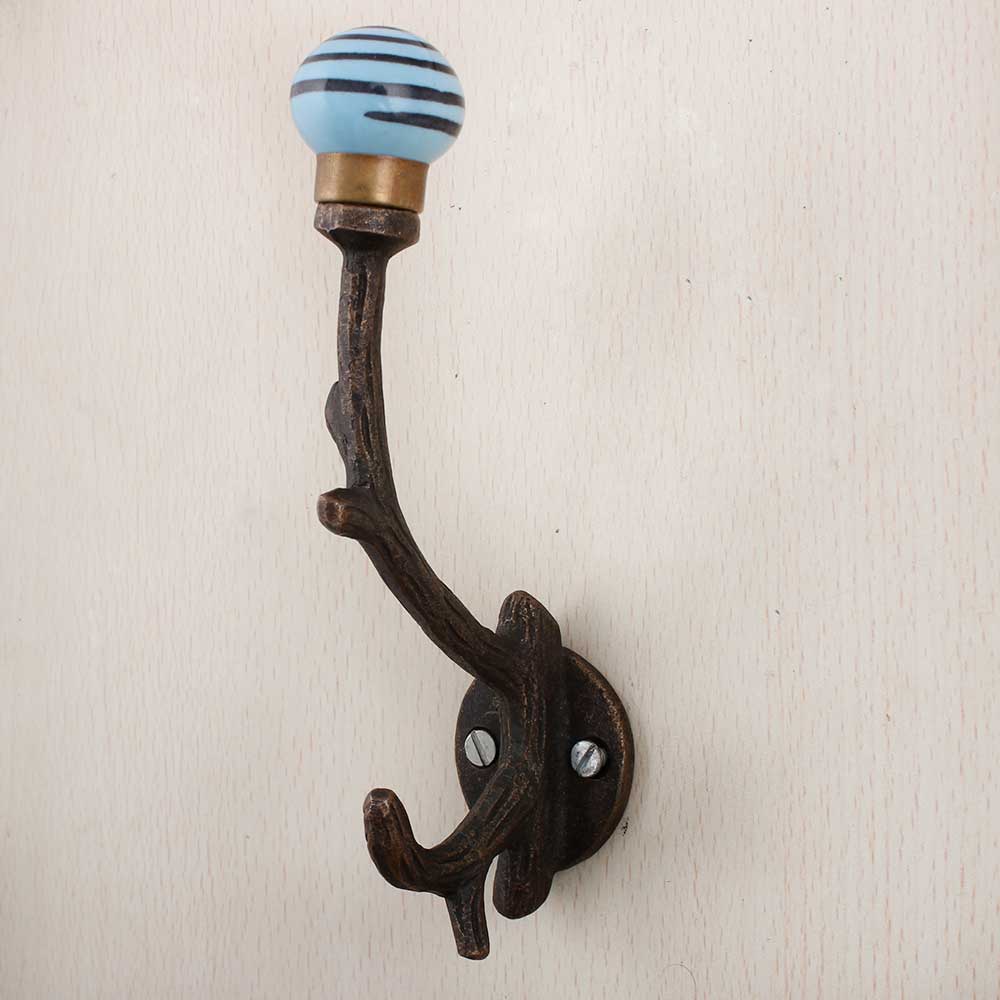 Turquoise Black Strip Tree Hook-Ehg-78. When Put on Wall or Cabinet It Gives A Sturdy Look. This Hook is Strong Enough to Hold Your Cloths, Keys, Tea Cups, Coffee Mugs, Hand Towels Etc.
