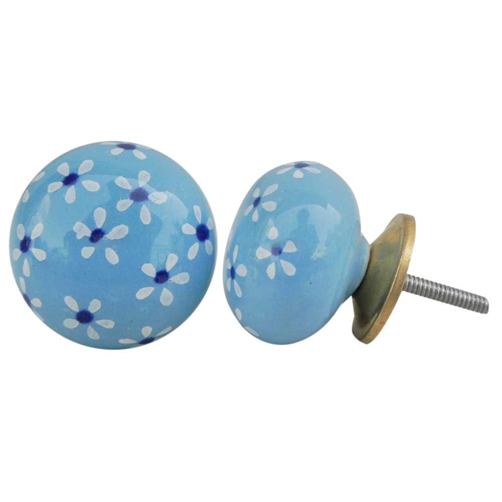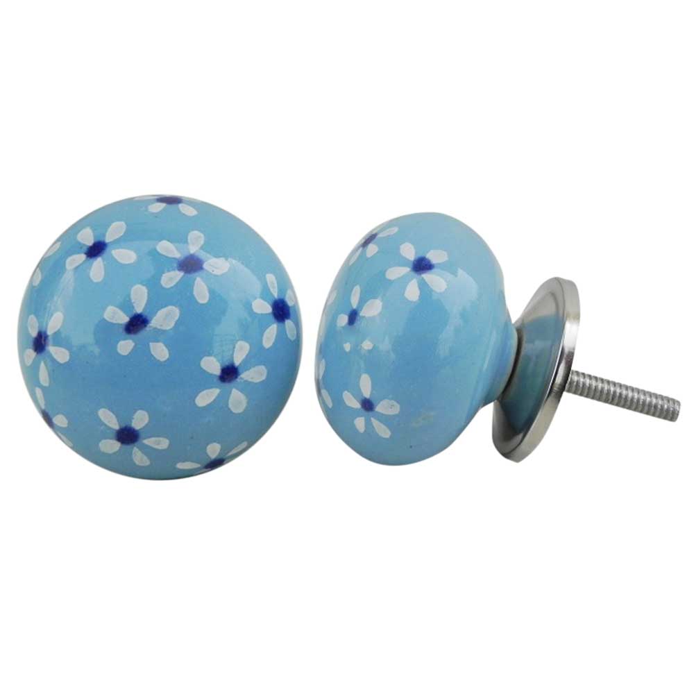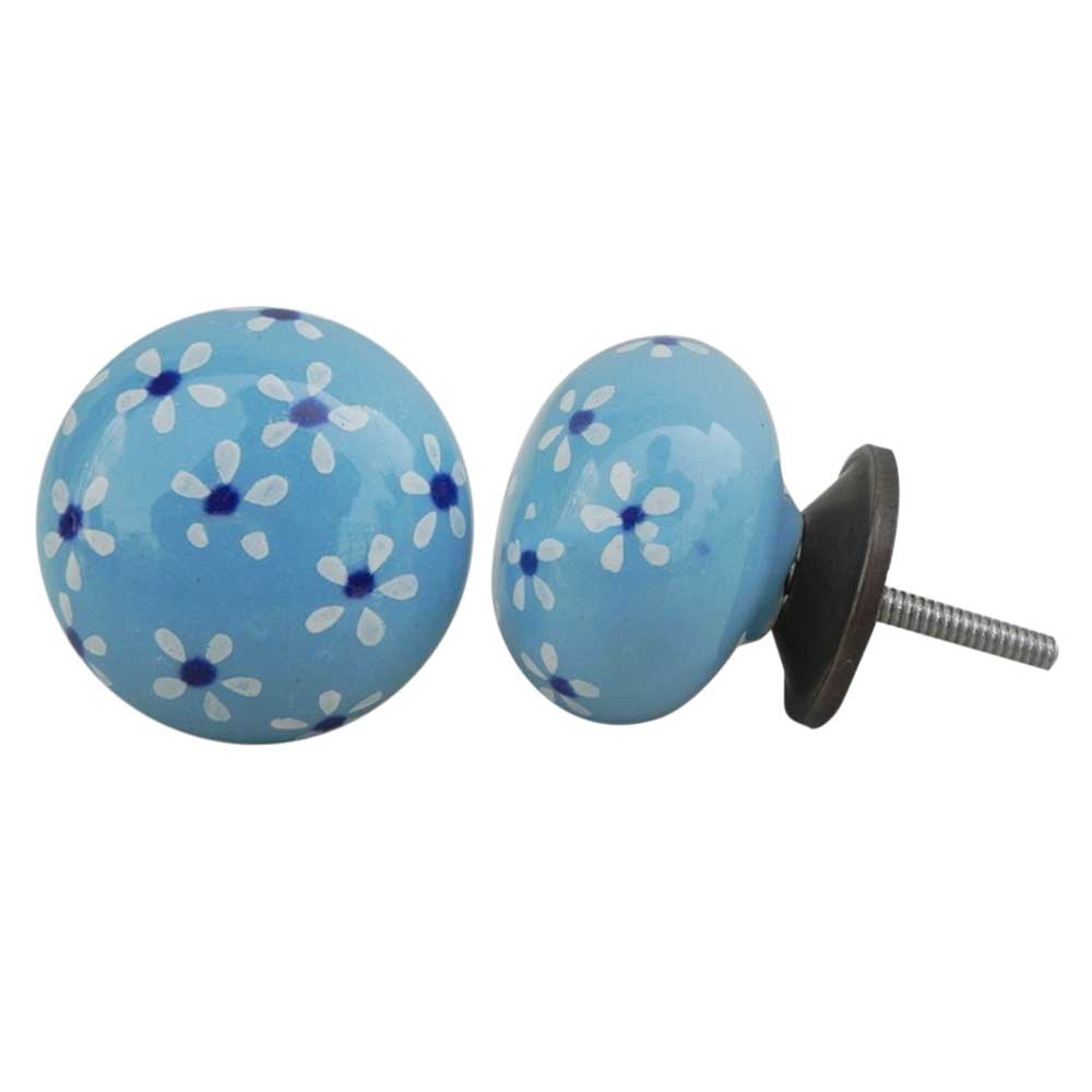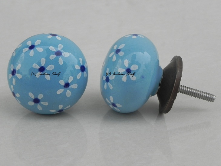 Turquoise Blue Flower Ceramic Knob. Ideal for kitchen cabinets, kitchen drawers, dining room, bed room, chest drawers, dressing tables, almirah