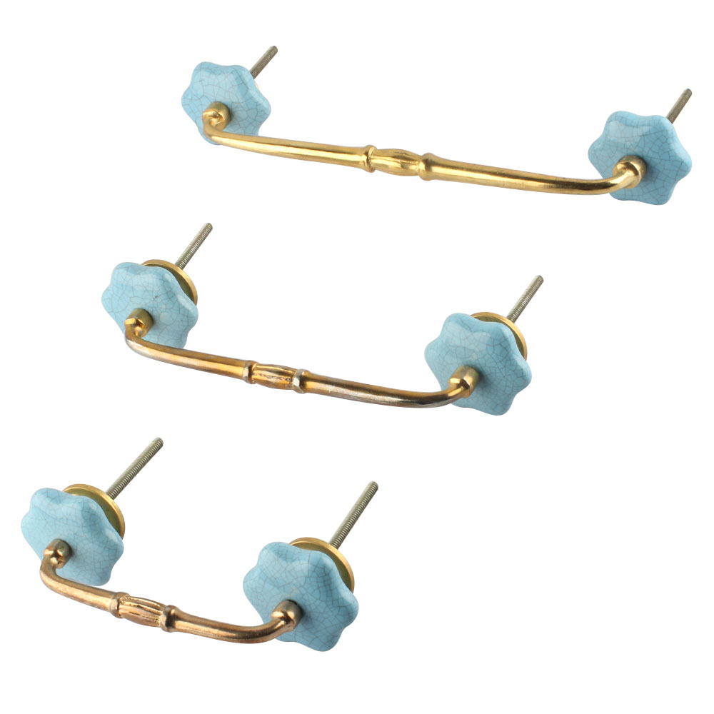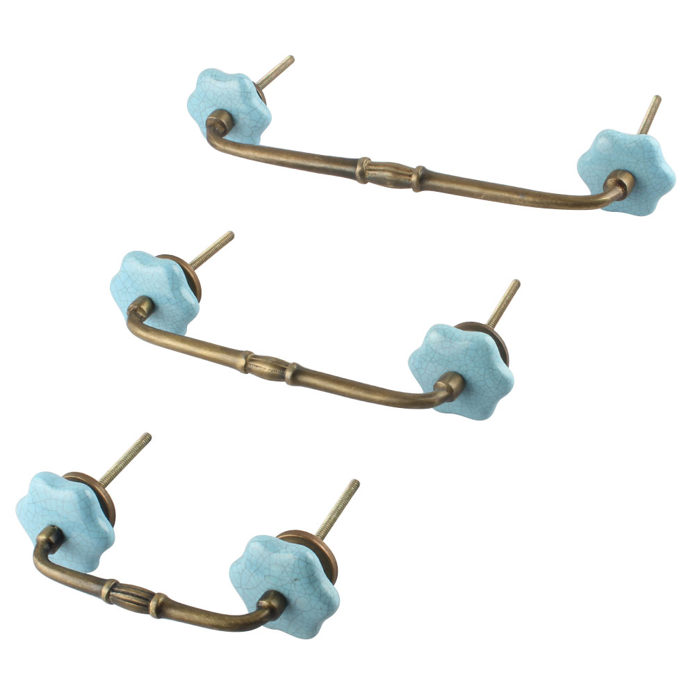 Turquoise Ceramic Bridge Drawer Handles. Ideal for Drawer, Dresser, Cabinet, Wardrobe, Cupboard and Almirah.