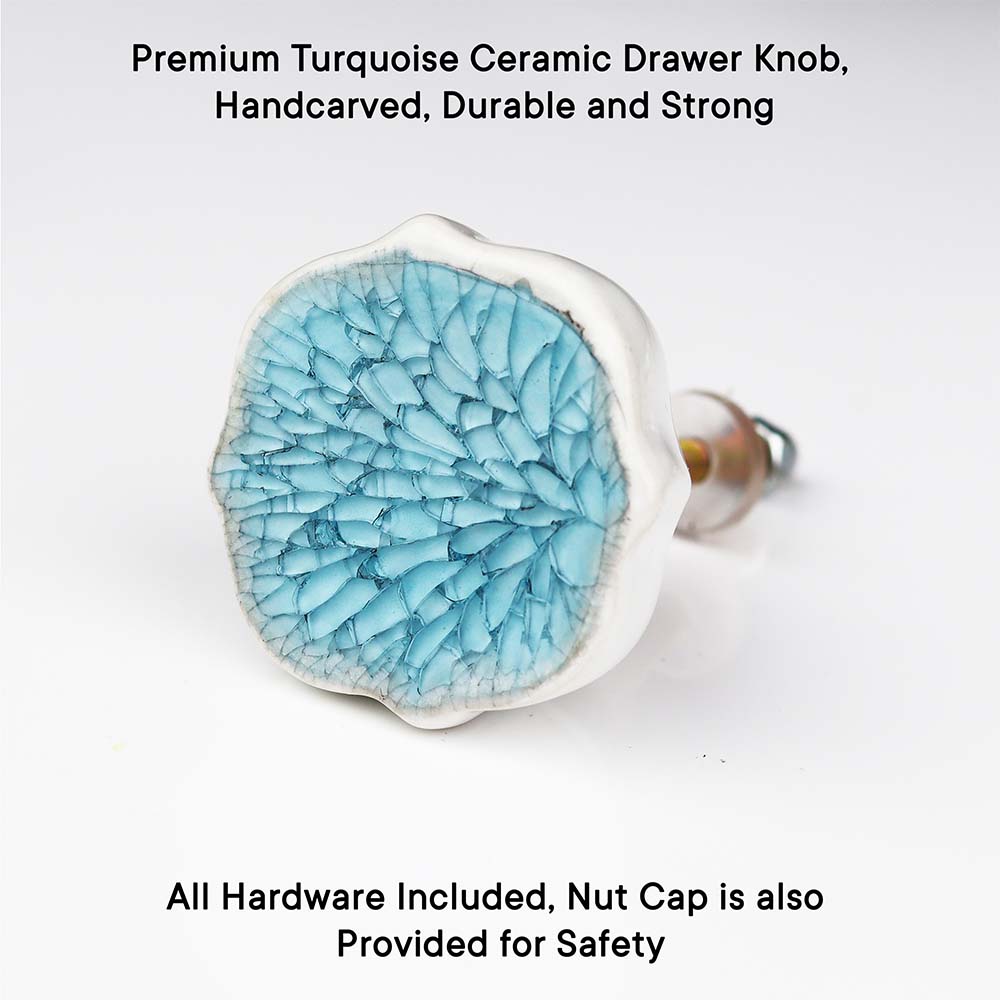 The Turquoise Ceramic Drawer Knob is a stunning blend of vibrant color and timeless design. Its rich turquoise hue brings a sense of tranquility and freshness to any room, while its ceramic craftsmanship ensures durability and elegance. This knob is the perfect way to add a pop of color and sophistication to your cabinets, dressers, or drawers.
