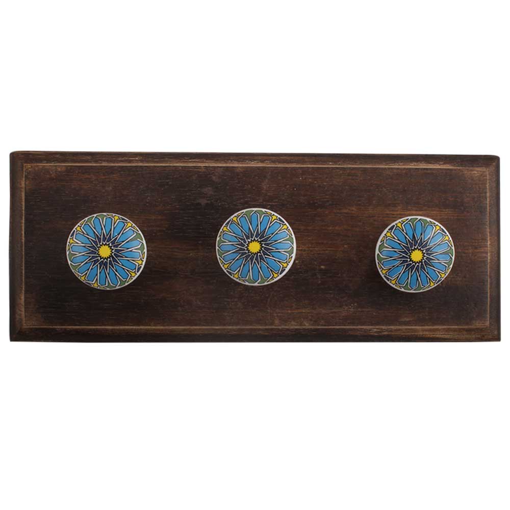 Turquoise Ceramic Flat Wooden Hook. A Perfect Complement to the Soft Tone of the Wood are these White Traditional Hat & Coat Hook Made of Genuine Porcelain and Brass. It can be use to Hang Jewellery, Leashes, Towels, Scarves, Light Weight Sweaters, Caps Etc.