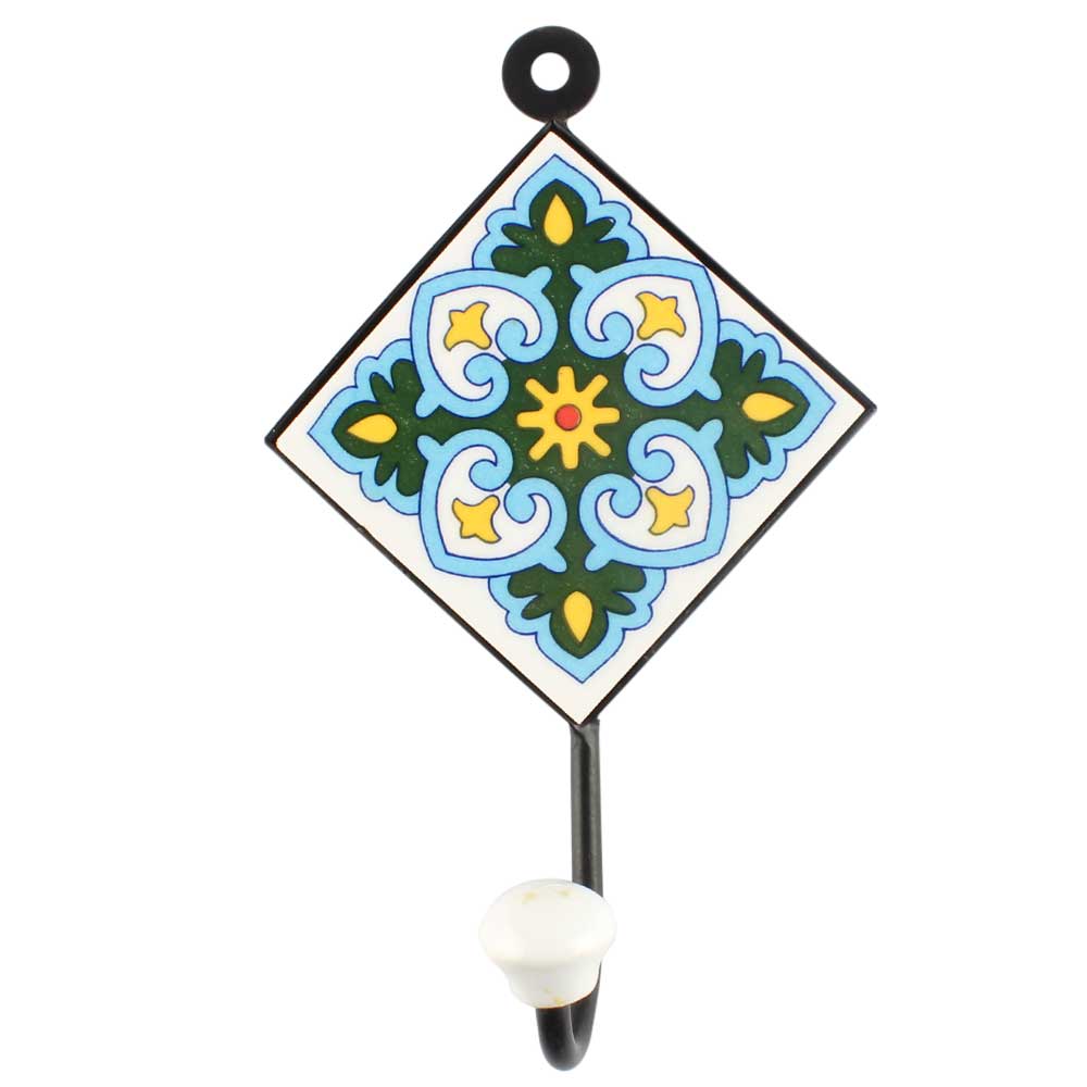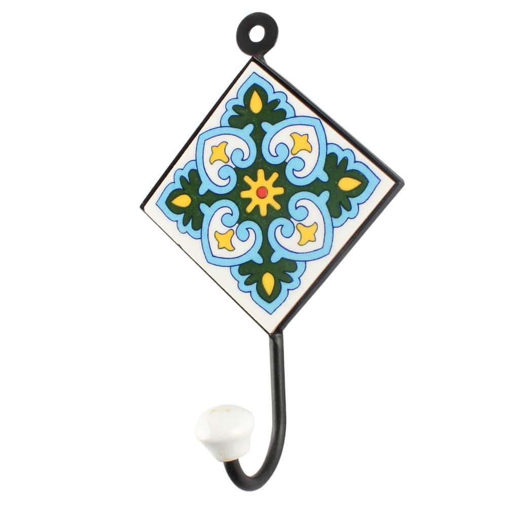 Turquoise Ceramic Tile Hook Online. When Put on Wall or Cabinet It is An Art in Itself. The Metal Part of this Hook is Black Powder Coated.