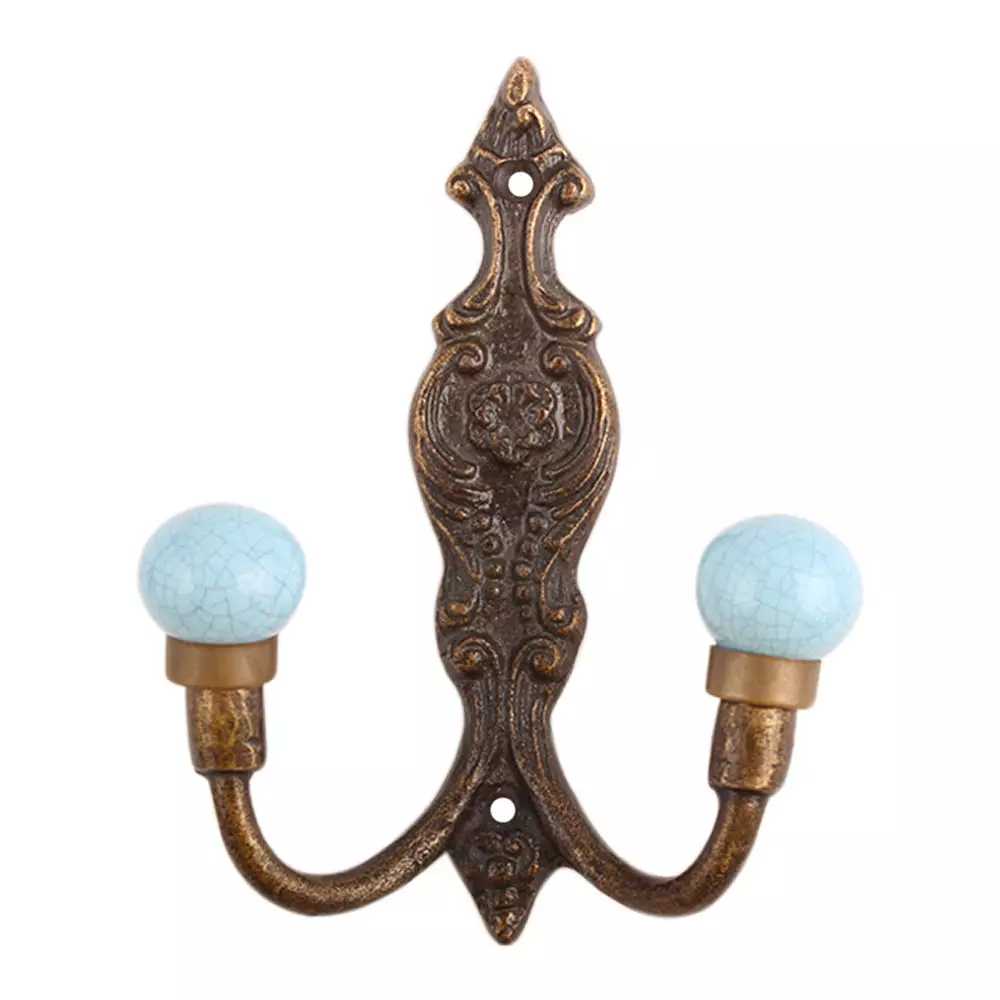 Turquoise Crackle Ceramic Iron Hook. When Put on Wall or Cabinet It Gives A Sturdy Look. This Hook is Strong Enough to Hold Your Cloths, Keys, Tea Cups, Coffee Mugs, Hand Towels Etc