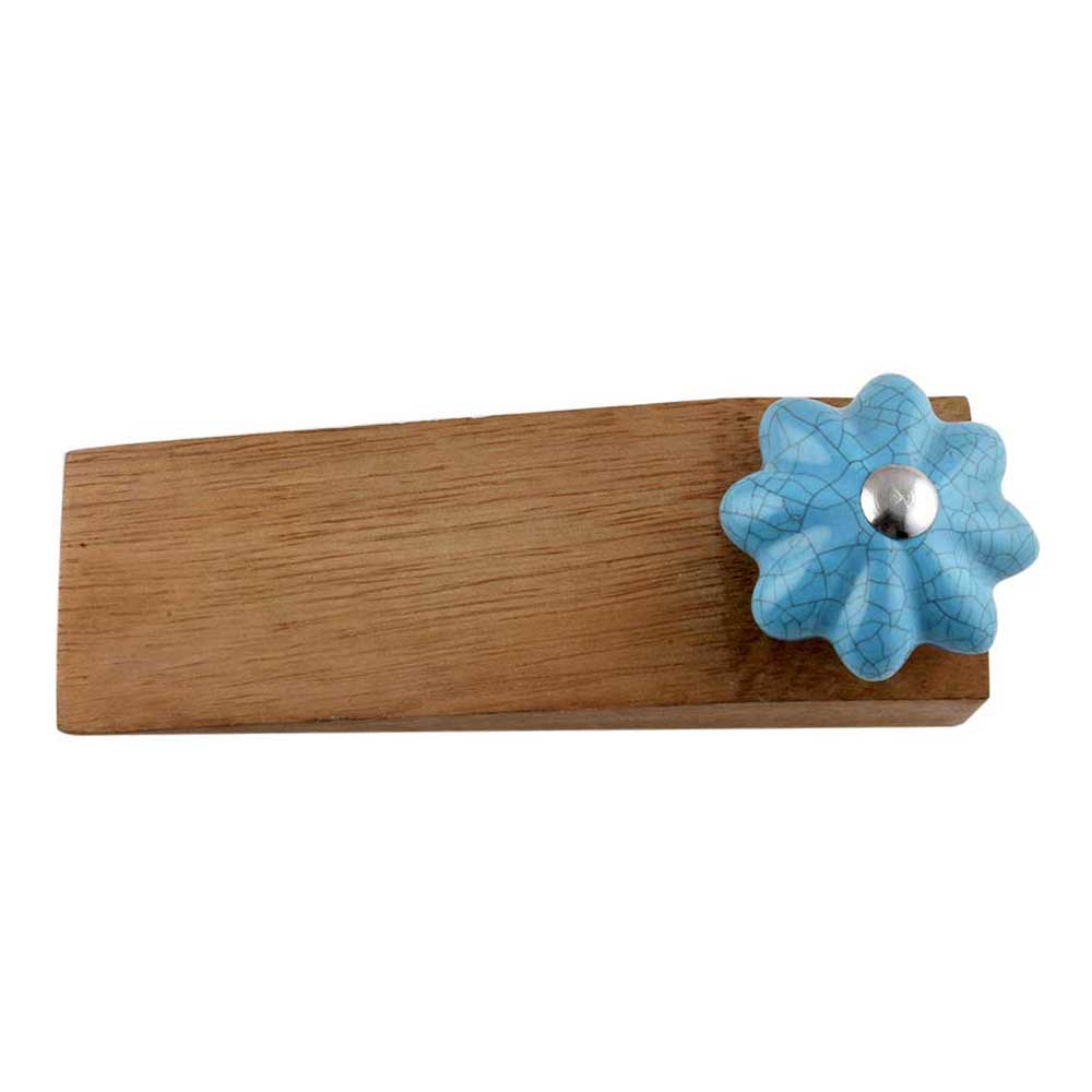 Turquoise Crackle Ceramic Wooden Door Stopper