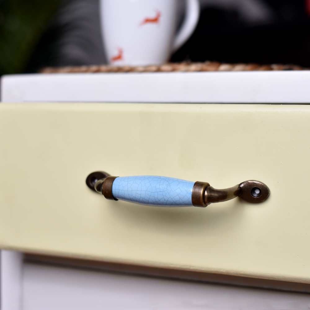 Each handle is carefully crafted with a unique crackle pattern that provides a textured, vintage appearance. The gentle turquoise hue brings a soothing, calming vibe, making these handles a sophisticated addition to any furniture or cabinets.