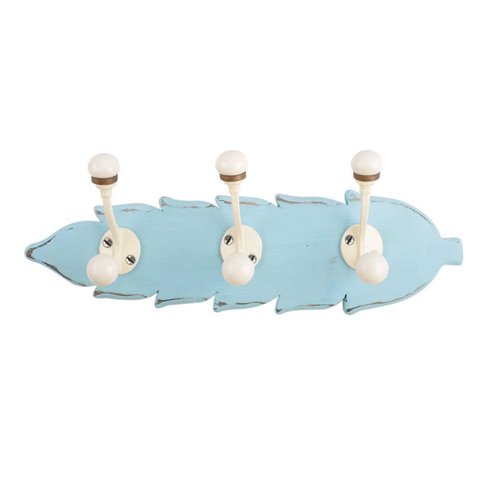 Turquoise Cream Double Loop Ceramic Iron Wooden Hooks. A Perfect Complement to the Soft Tone of the Wood are these White Traditional Hat & Coat Hook Made of Genuine Porcelain and Brass. It can be use to Hang Jewellery, Leashes, Towels, Scarves, Light Weight Sweaters, Caps Etc.