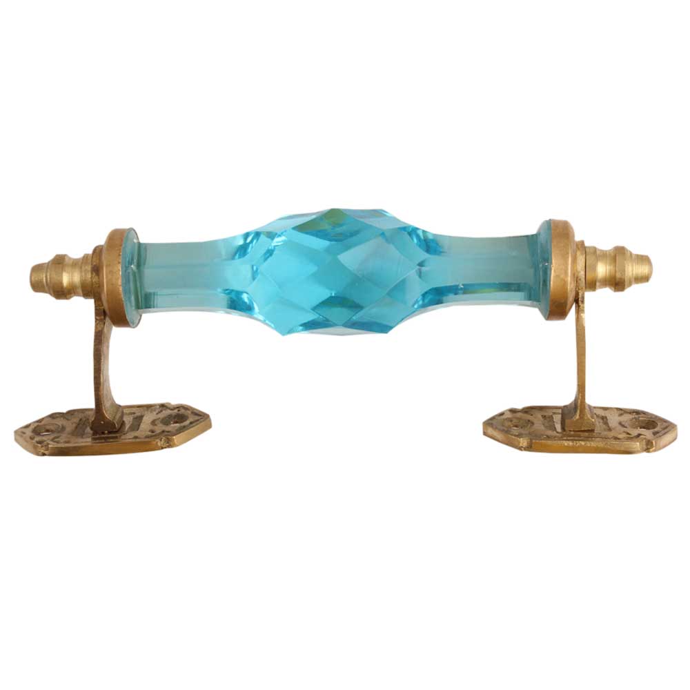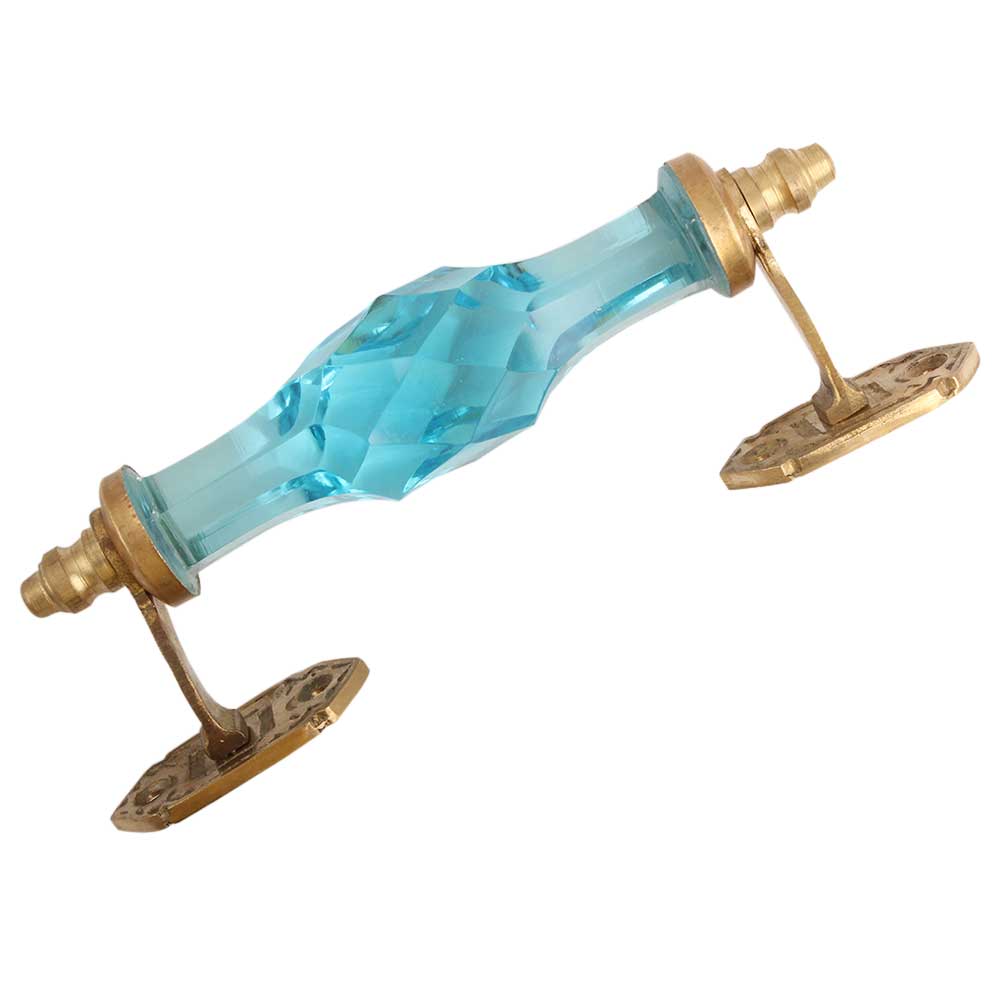 Turquoise Cut Glass Golden Big Door Handle. Ideal for Drawer, Dresser, Cabinet, Wardrobe, Cupboard and Almirah.