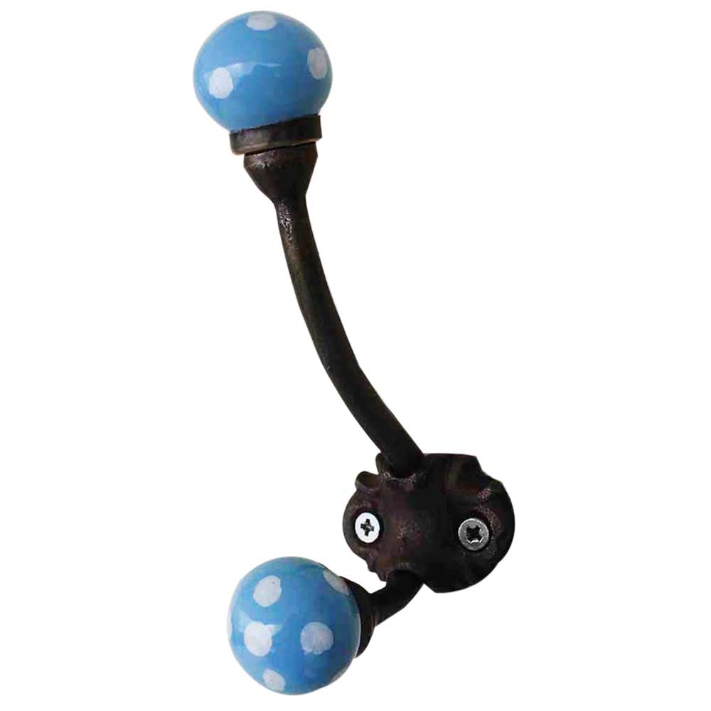 Turquoise Dot Iron Hook-Ehg-09. When Put on Wall or Cabinet It Gives A Sturdy Look. This Hook is Strong Enough to Hold Your Cloths, Keys, Tea Cups, Coffee Mugs, Hand Towels Etc.