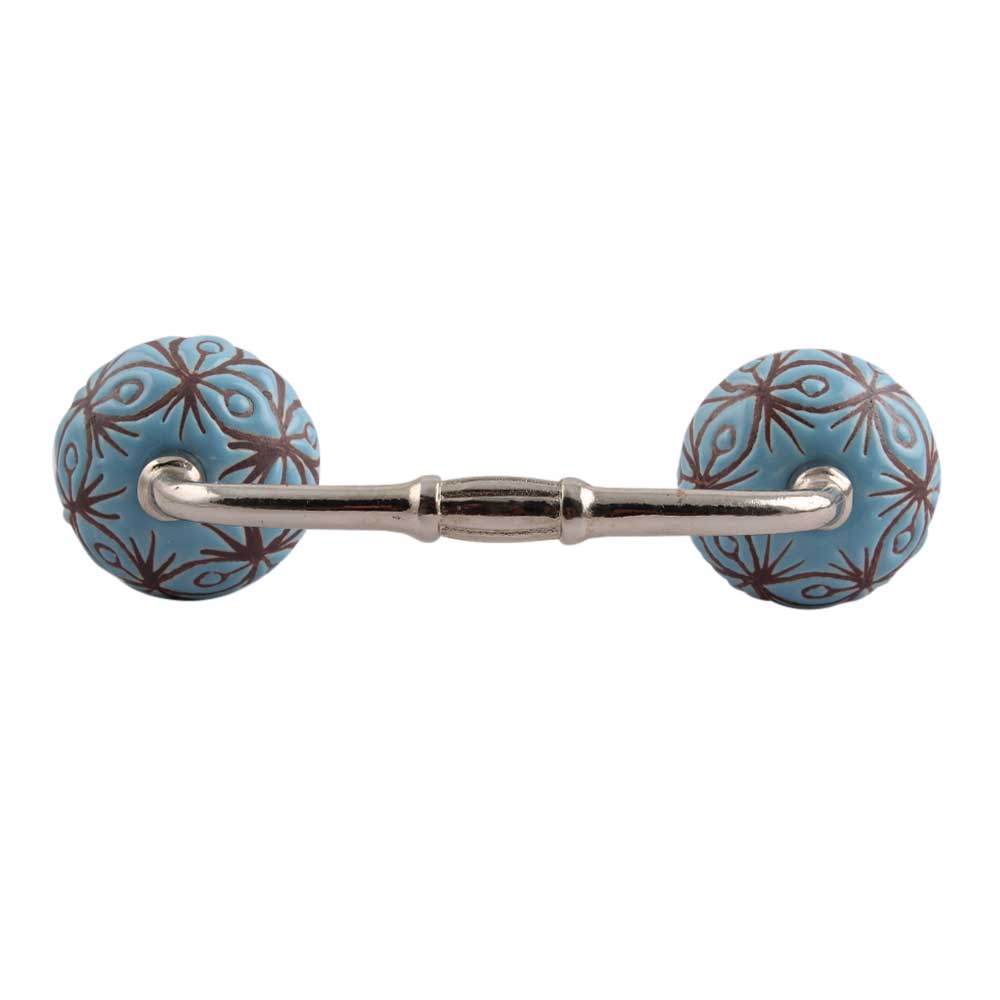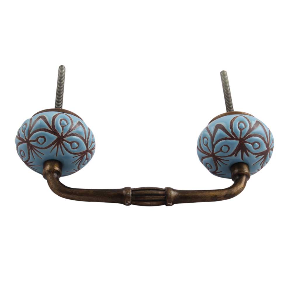 Turquoise Etched Ceramic Floral Bridge Handle. Ideal for Drawer, Dresser, Cabinet, Wardrobe, Cupboard and Almirah.