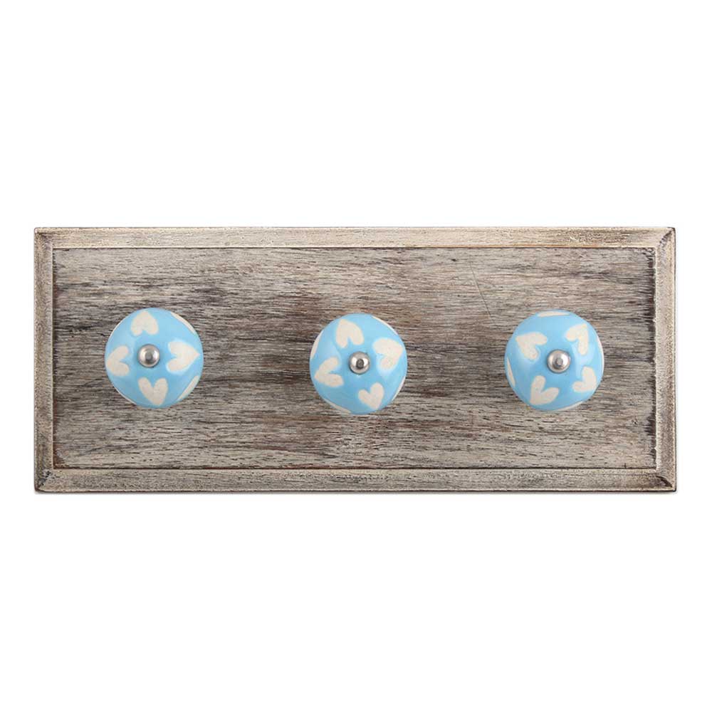 Turquoise Etched Ceramic Wooden Hook. A Perfect Complement to the Soft Tone of the Wood are these White Traditional Hat & Coat Hook Made of Genuine Porcelain and Brass. It can be use to Hang Jewellery, Leashes, Towels, Scarves, Light Weight Sweaters, Caps Etc.