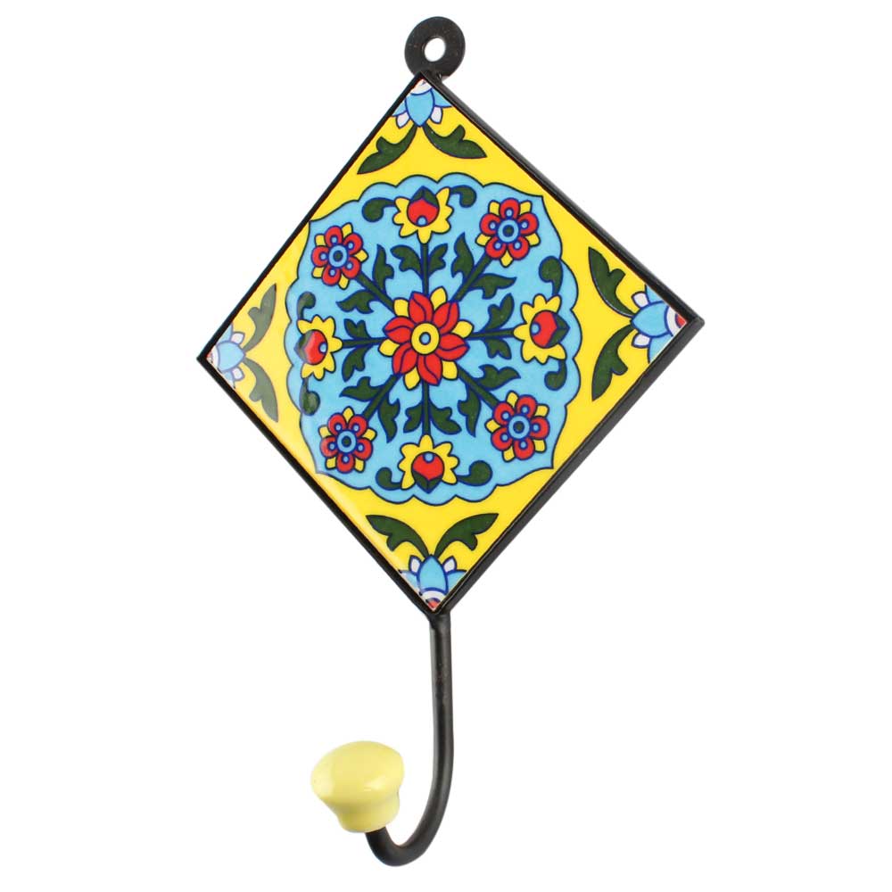 Turquoise Floral Ceramic Tile Hook