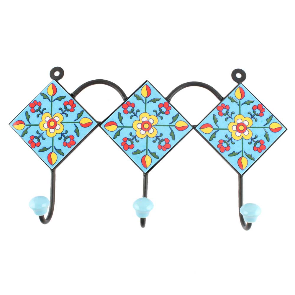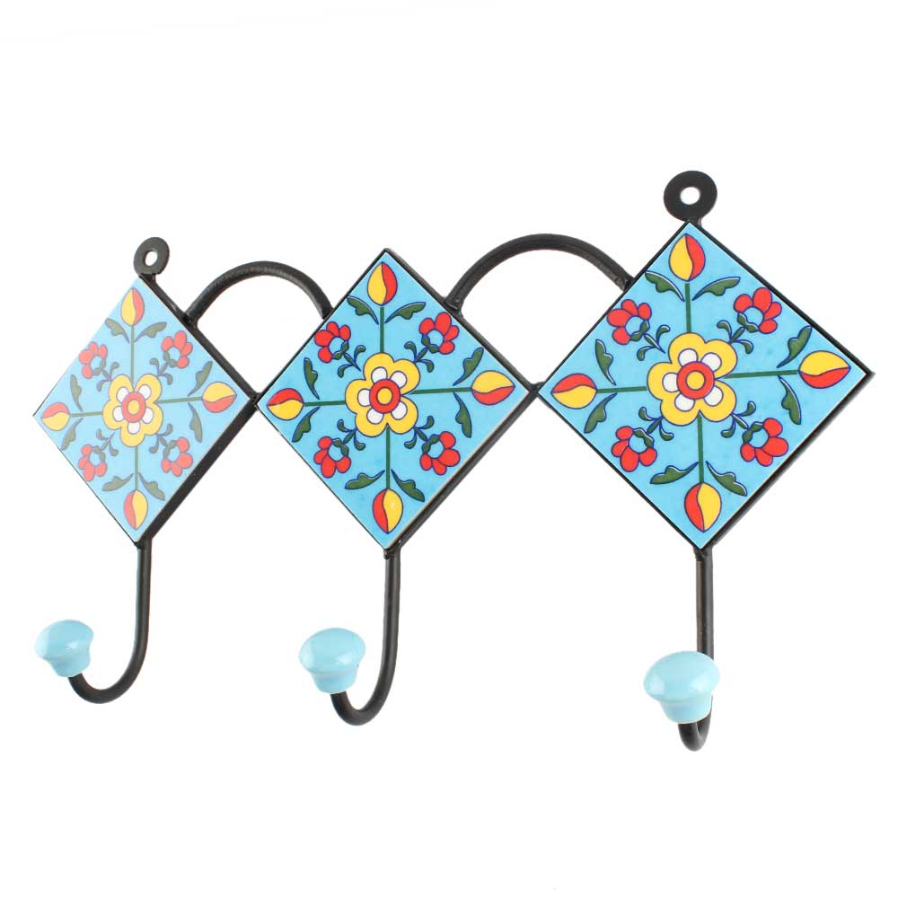 Turquoise Floral Ceramic Tile Hook