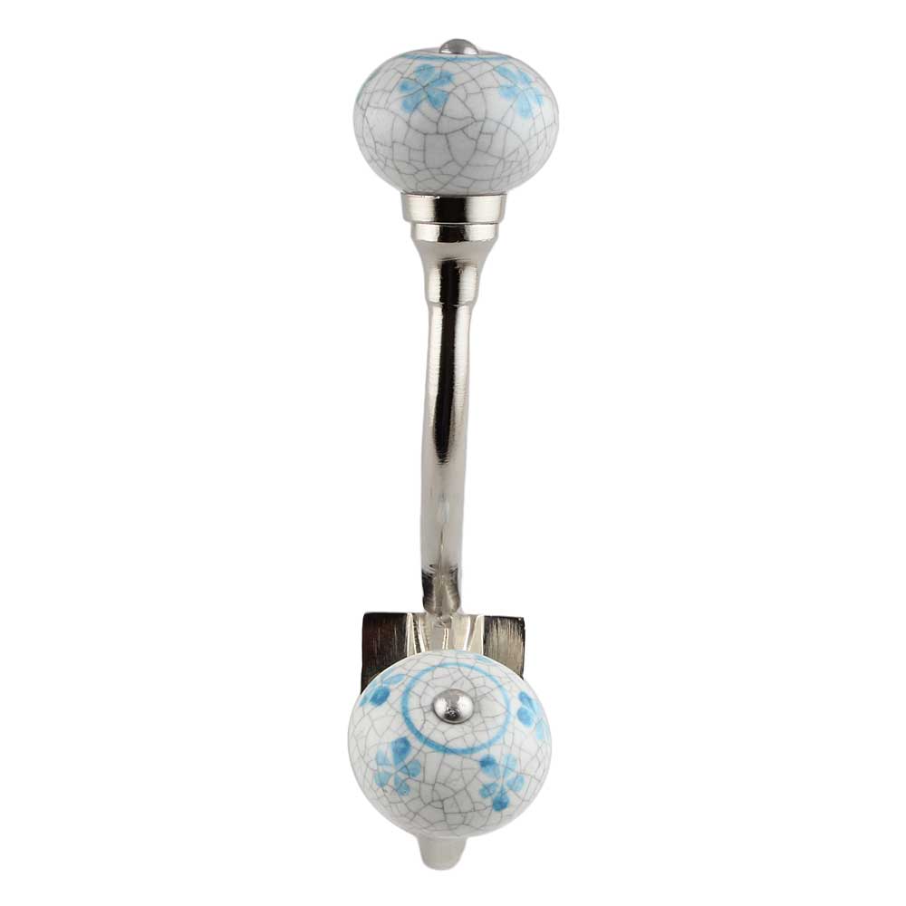 The Turquoise Floral Crackle Ceramic Silver Iron Hook offers a perfect blend of style, color, and function. Featuring a hand-glazed ceramic knob in a floral design with a turquoise crackle finish, this eye-catching hook is mounted on a sleek, silver-toned iron base. Inspired by classic vintage patterns with a modern twist, it serves as both a decorative element and a practical wall accessory—ideal for brightening up any space while staying organized.