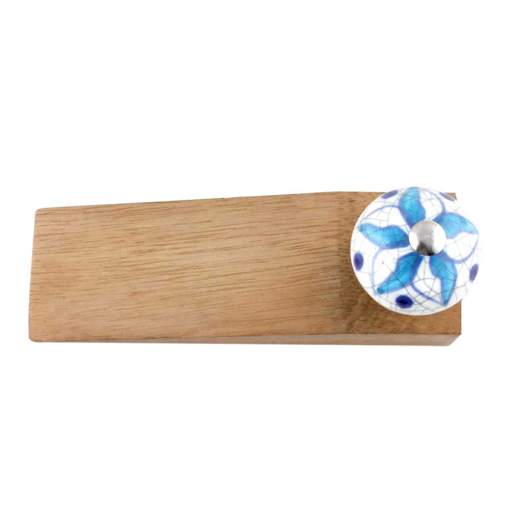 Maintaining the Turquoise Floral Crackle Ceramic Wooden Door Stopper is effortless. A quick wipe with a damp cloth is enough to keep the ceramic surface looking pristine. The wooden base, with its natural grain, adds a rustic touch and is easy to care for as well.