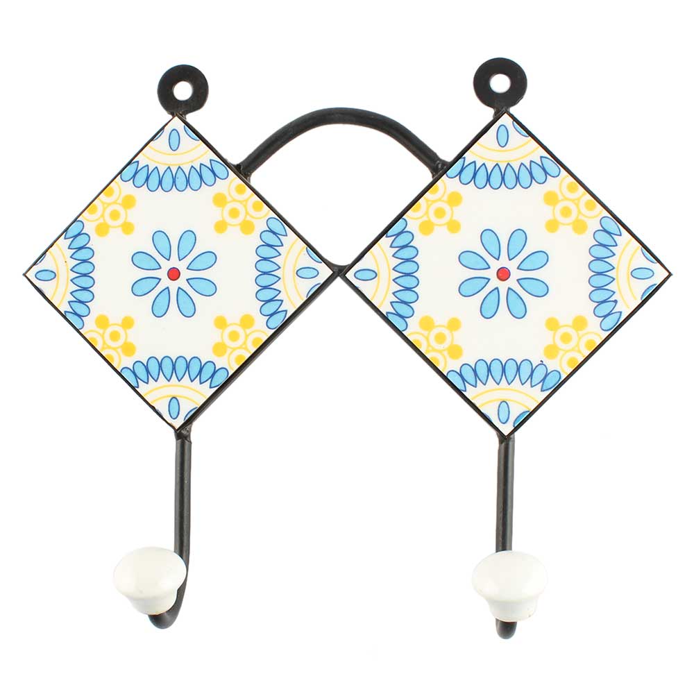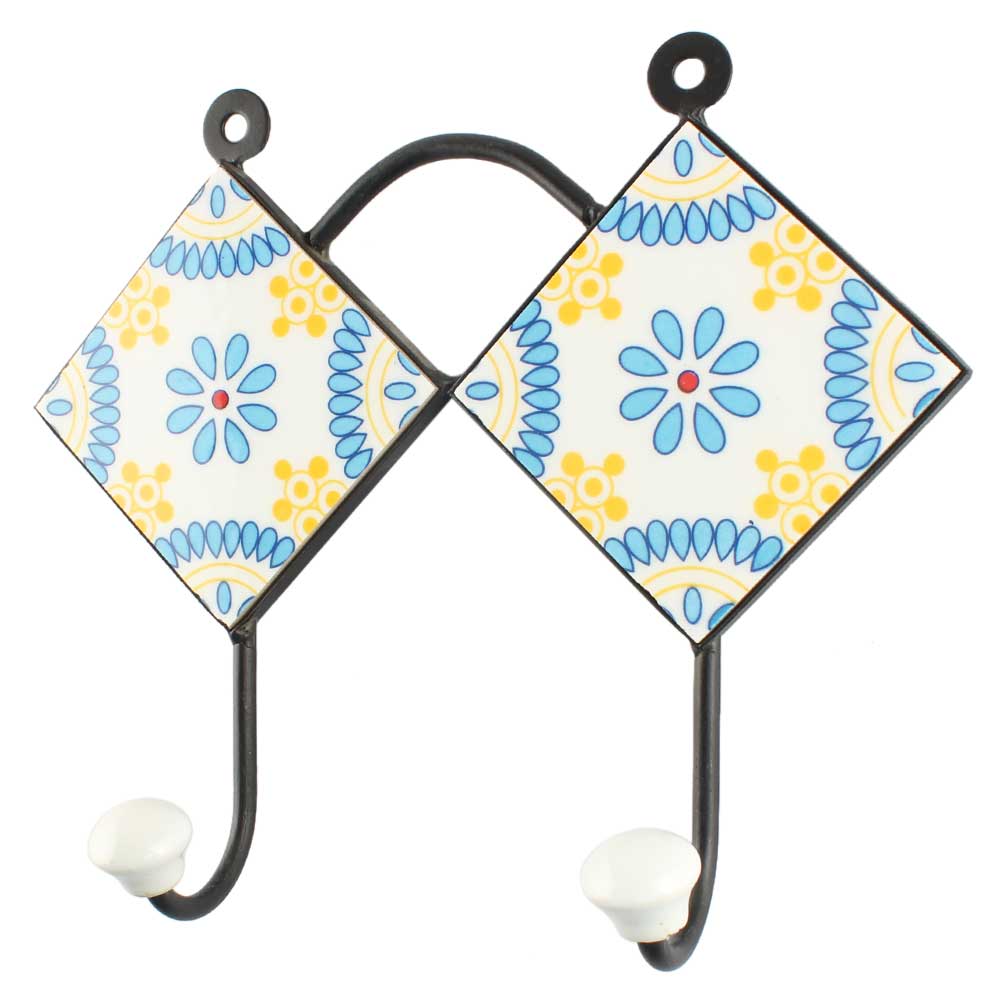 Turquoise Flower Ceramic Tile Hook. When Put on Wall or Cabinet It is An Art in Itself. The Metal Part of this Hook is Black Powder Coated.