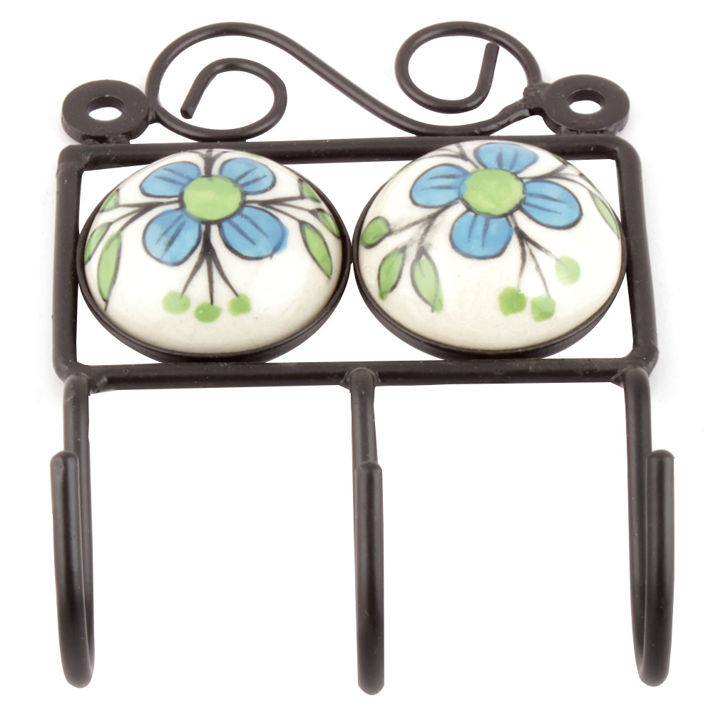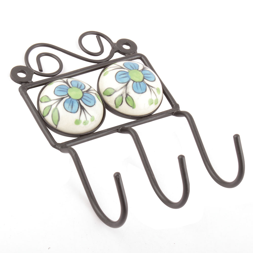 Turquoise Flower Ceramic Tiles Hooks. When Put on Wall or Cabinet it is an Art in itself. The Metal Part of this Hook is Black Powder Coated.