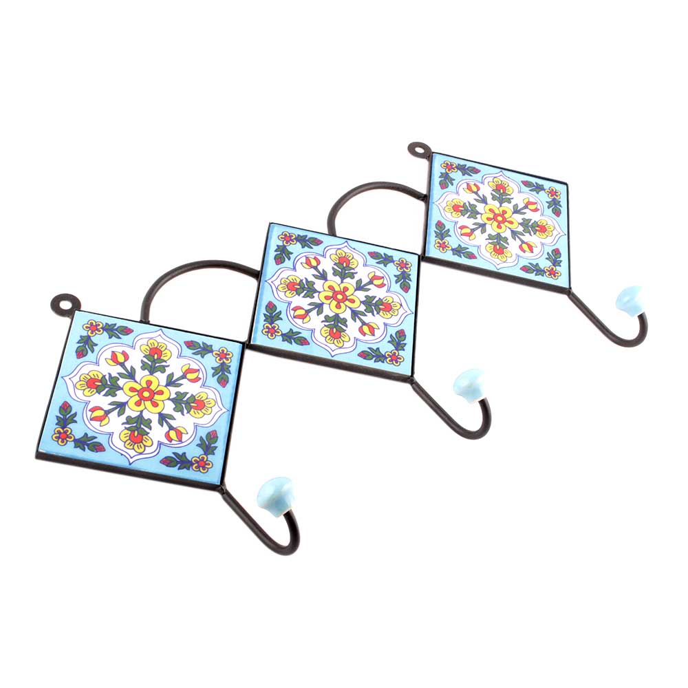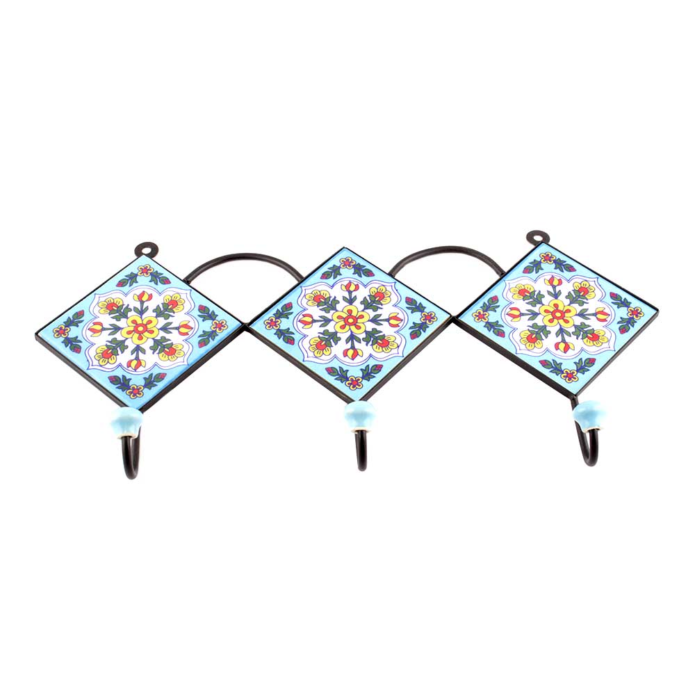 Turquoise Forest Green Leaf Ceramic Floral Tiles Hooks. When Put on Wall or Cabinet it is an Art in itself. The Metal Part of this Hook is Black Powder Coated.