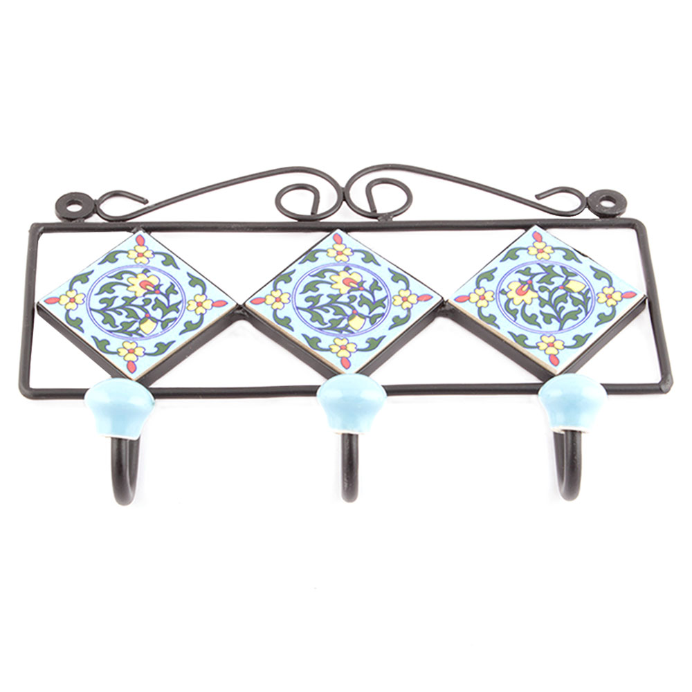 Turquoise Forest Green Leaf Tiles Hooks. When Put on Wall or Cabinet it is an Art in itself. The Metal Part of this Hook is Black Powder Coated.