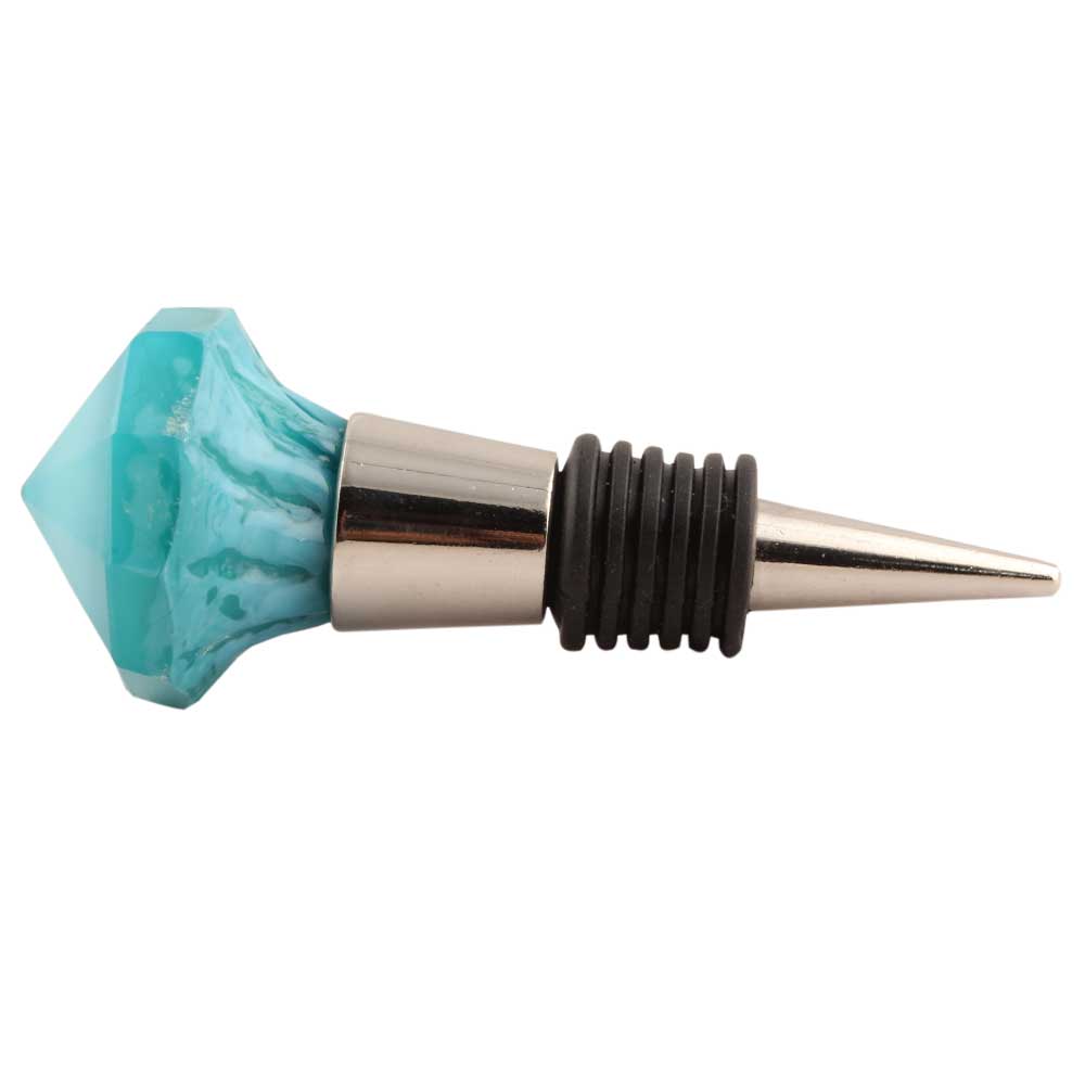 Turquoise Glass Top Wine Stopper. Zinc Alloy Wine Bottle Stopper with Attractive Jute Bag Packaging.