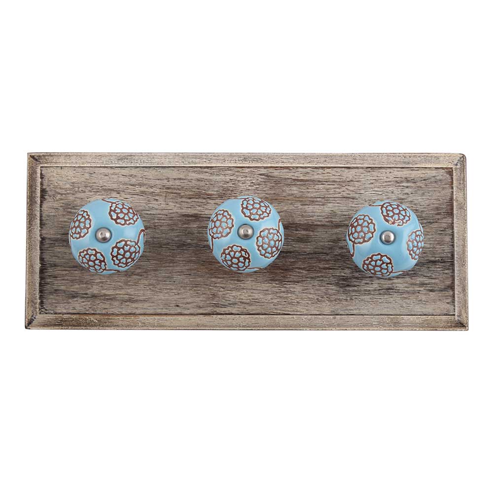 Turquoise Marigold Ceramic Floral Wooden Hook. A Perfect Complement to the Soft Tone of the Wood are these White Traditional Hat & Coat Hook Made of Genuine Porcelain and Brass. It can be use to Hang Jewellery, Leashes, Towels, Scarves, Light Weight Sweaters, Caps Etc.