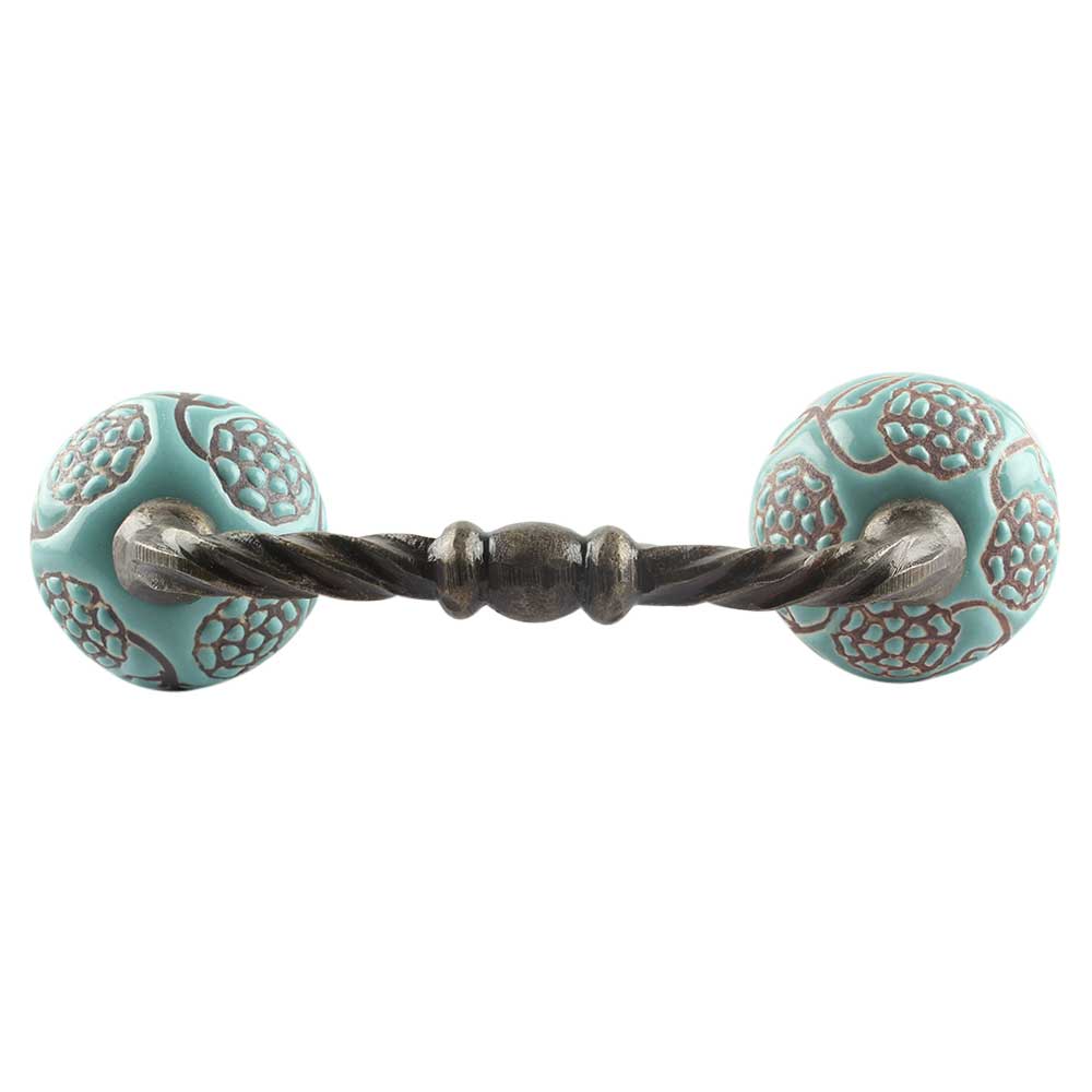 Turquoise Marigold Etched Ceramic Cut Bridge Handle. Ideal for Drawer, Dresser, Cabinet, Wardrobe, Cupboard and Almirah etc.