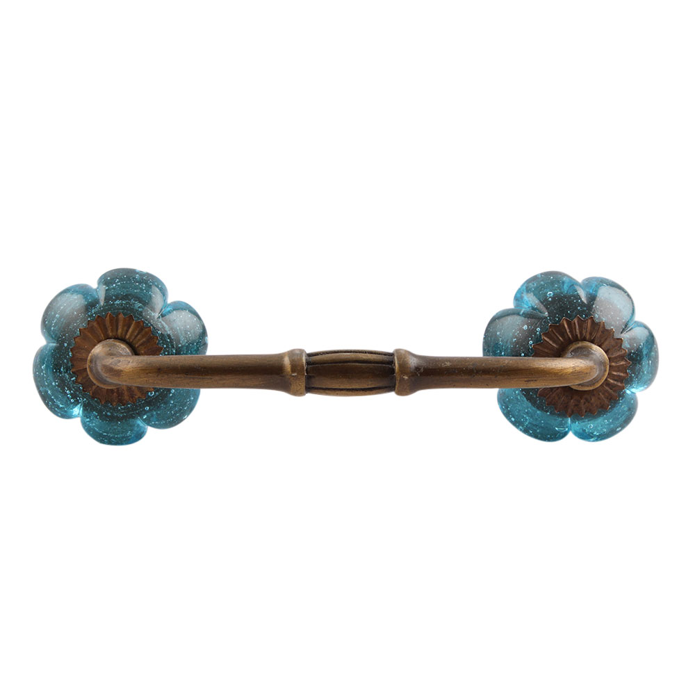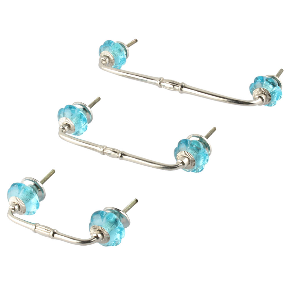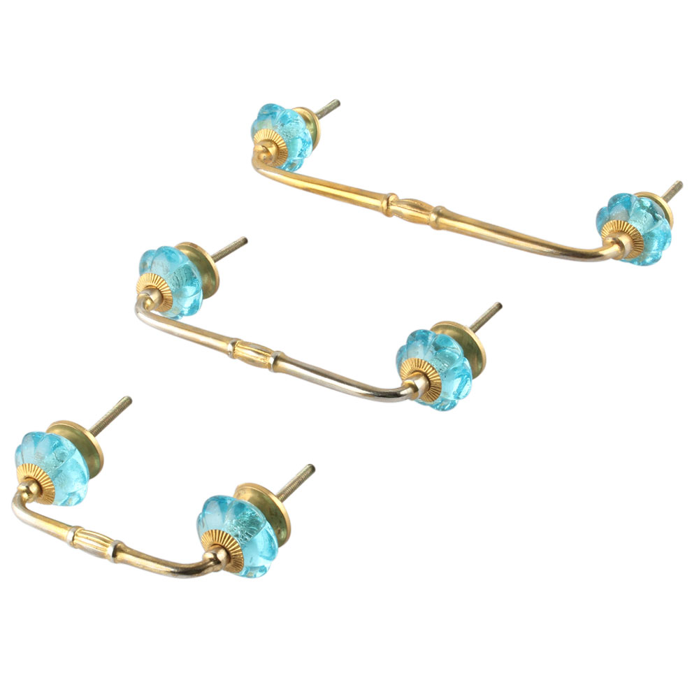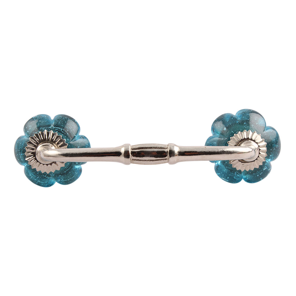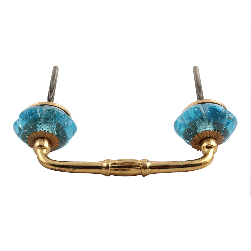 Turquoise Melon Glass Bridge Handle. Ideal for Drawer, Dresser, Cabinet, Wardrobe, Cupboard and Almirah.
