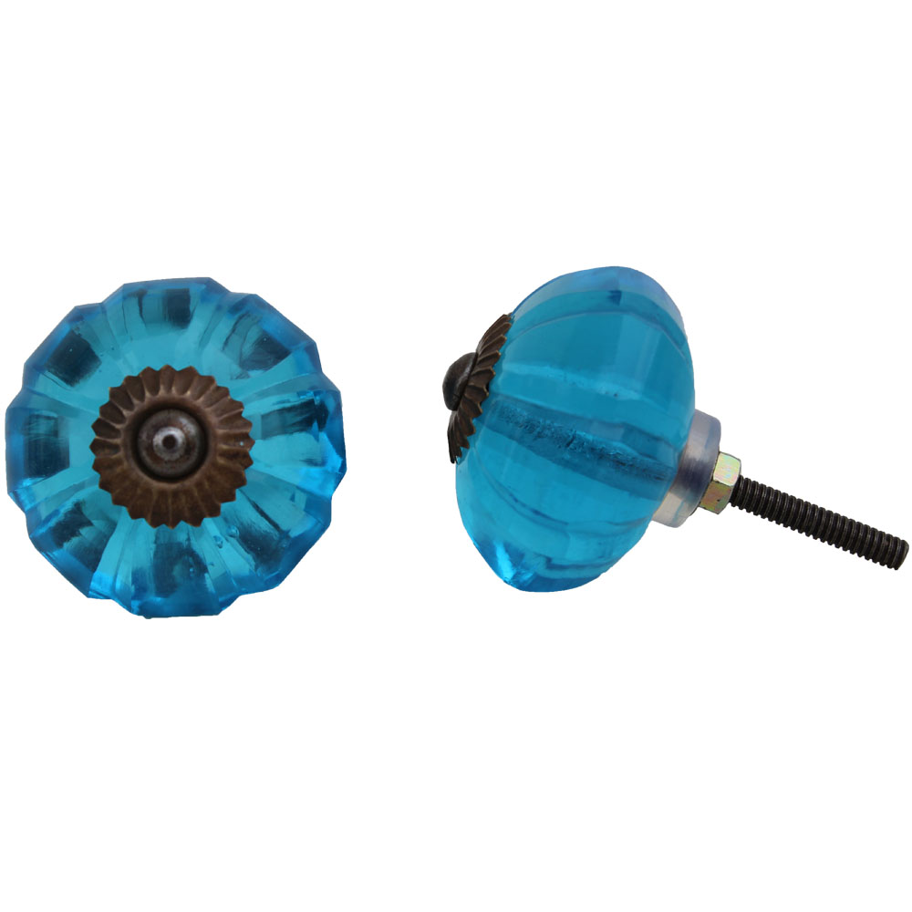Turquoise Melon Glass Knobs. Ideal for Drawer, Dresser, Cabinet, Wardrobe, Cupboard and Almirah.