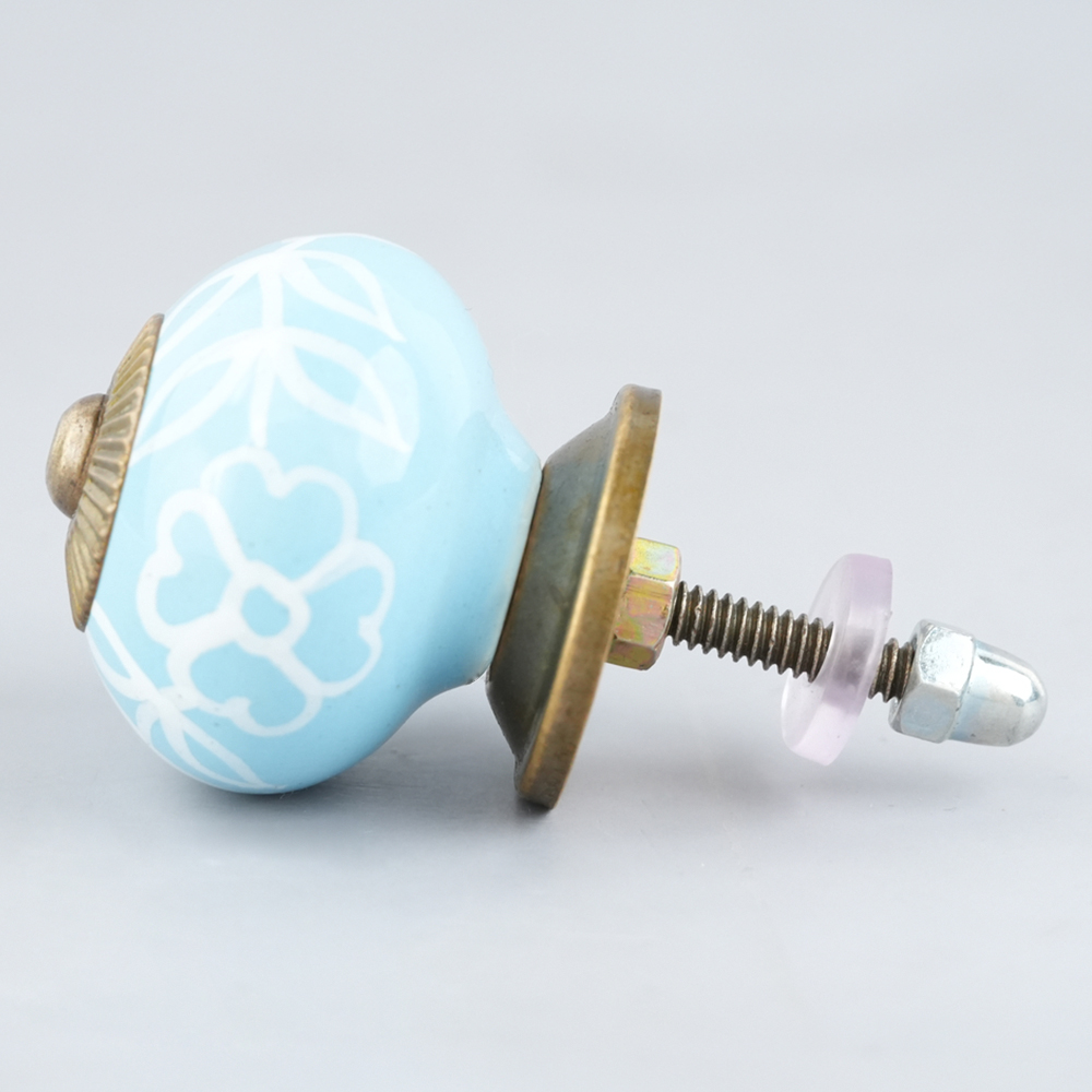 Turquoise Painted Leaf Knob, kitchen drawers, dining room, bed room, chest drawers, dressing tables, almirahs, etc.