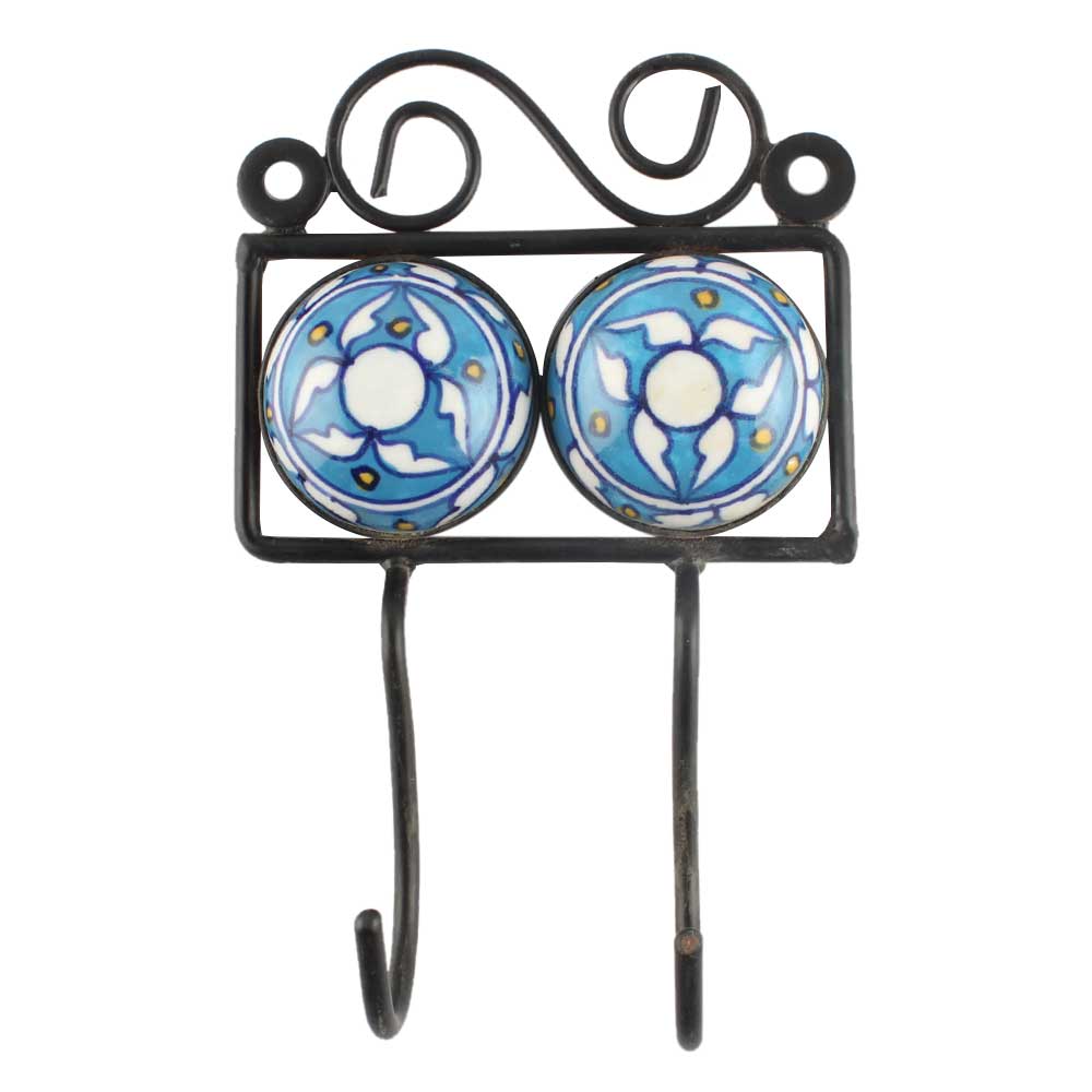 Turquoise Round Ceramic Tile Wall Hook. When Put on Wall or Cabinet It is An Art in Itself. The Metal Part of this Hook is Black Powder Coated.