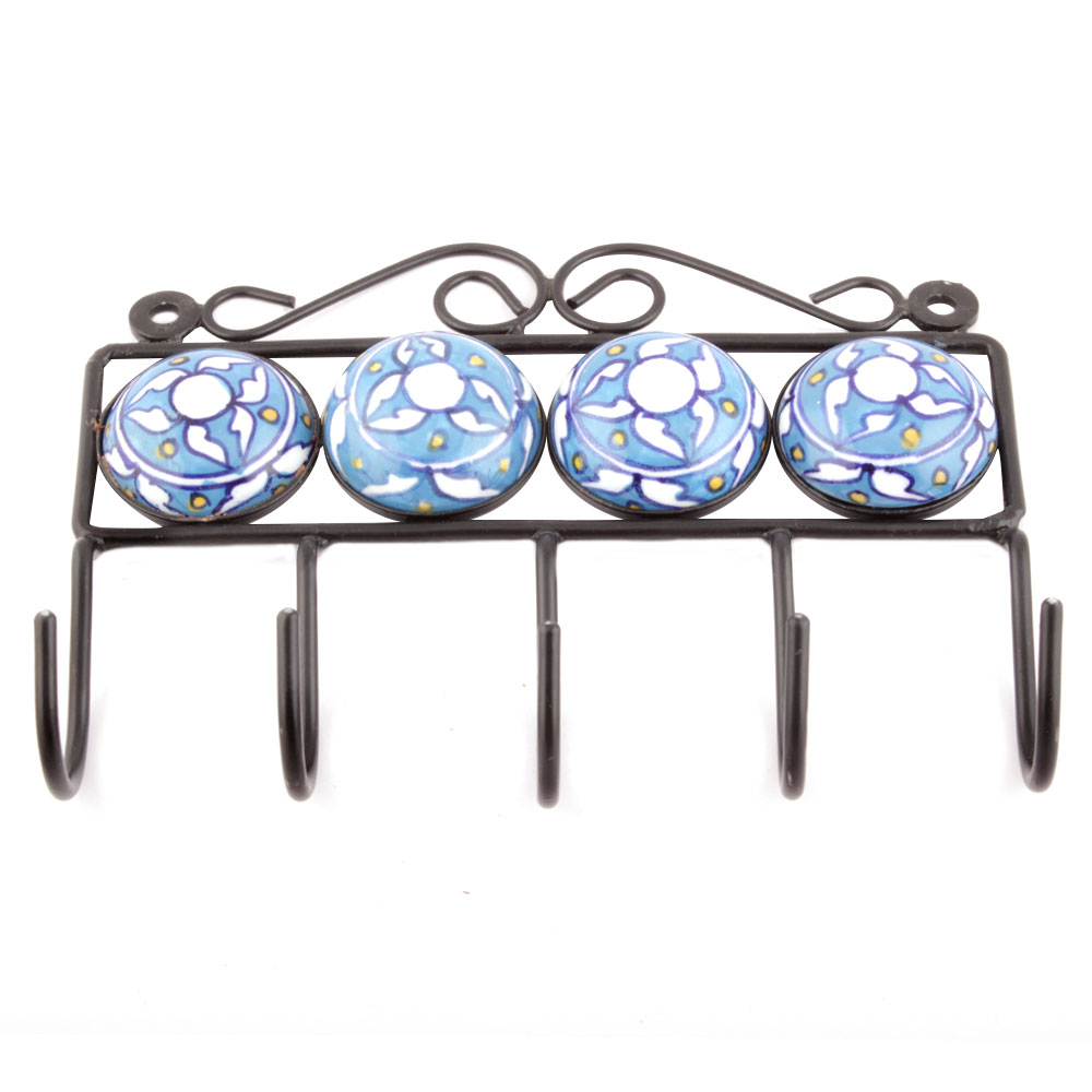 Turquoise Round Floral Tiles Hooks. When Put on Wall or Cabinet it is an Art in itself. The Metal Part of this Hook is Black Powder Coated.