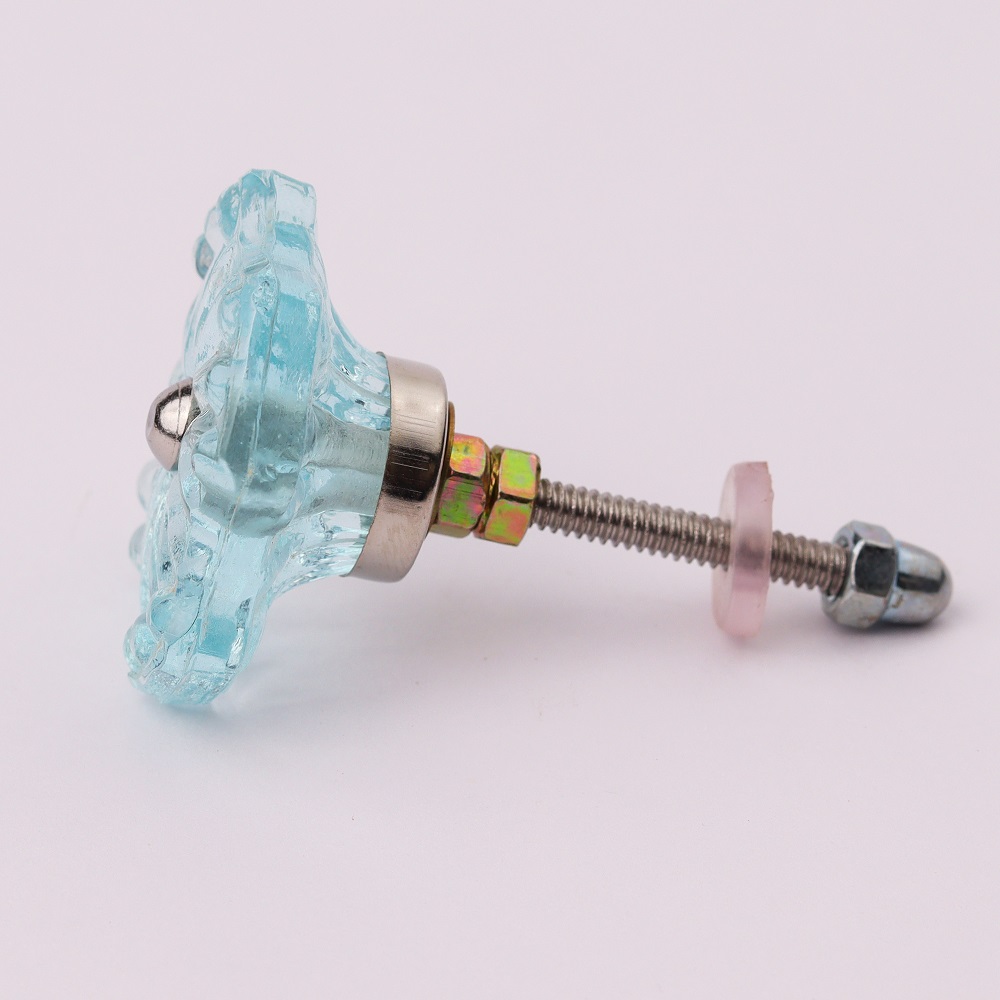 Keep your Turquoise Square Blue Glass Flower Cabinet Knob looking as gorgeous as the day you put it in. You simply wipe with a soft, damp cloth to dust it and keep the glass crystal clear.