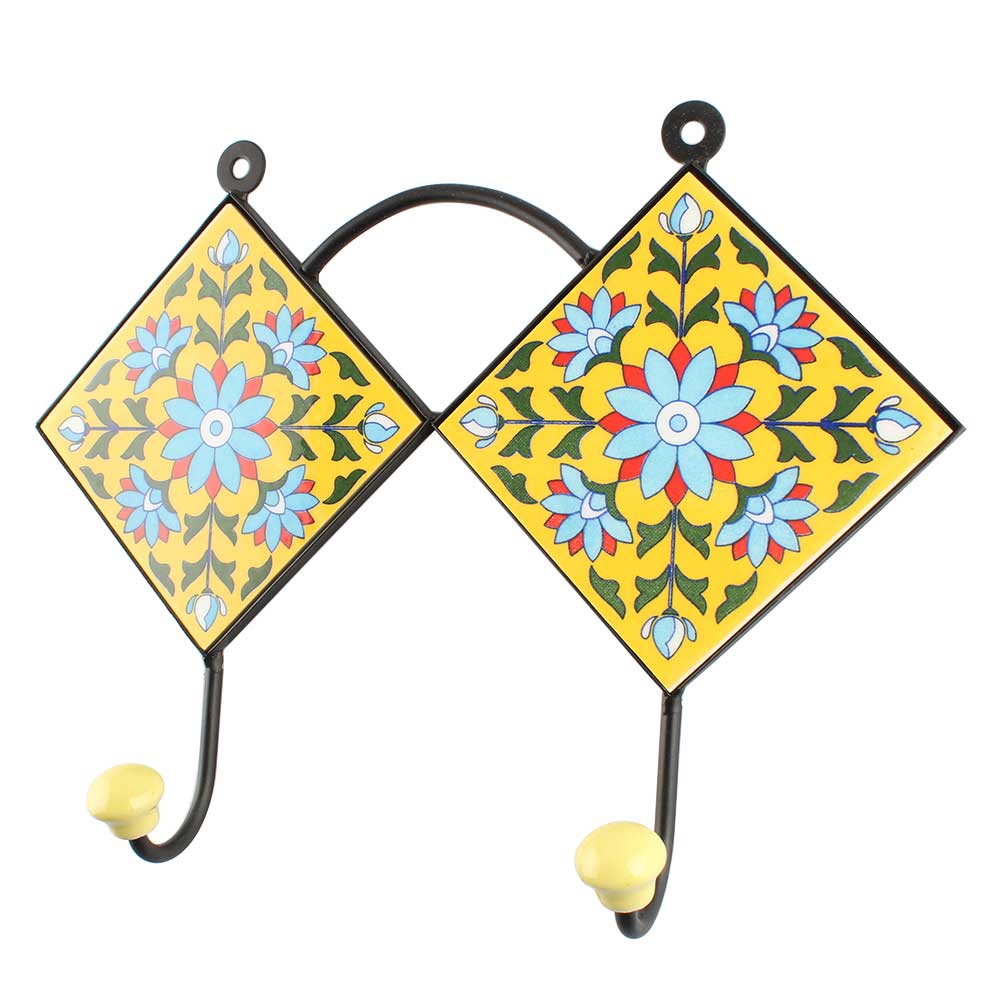 Turquoise Sunflower Ceramic Tiles Hook – Single Piece