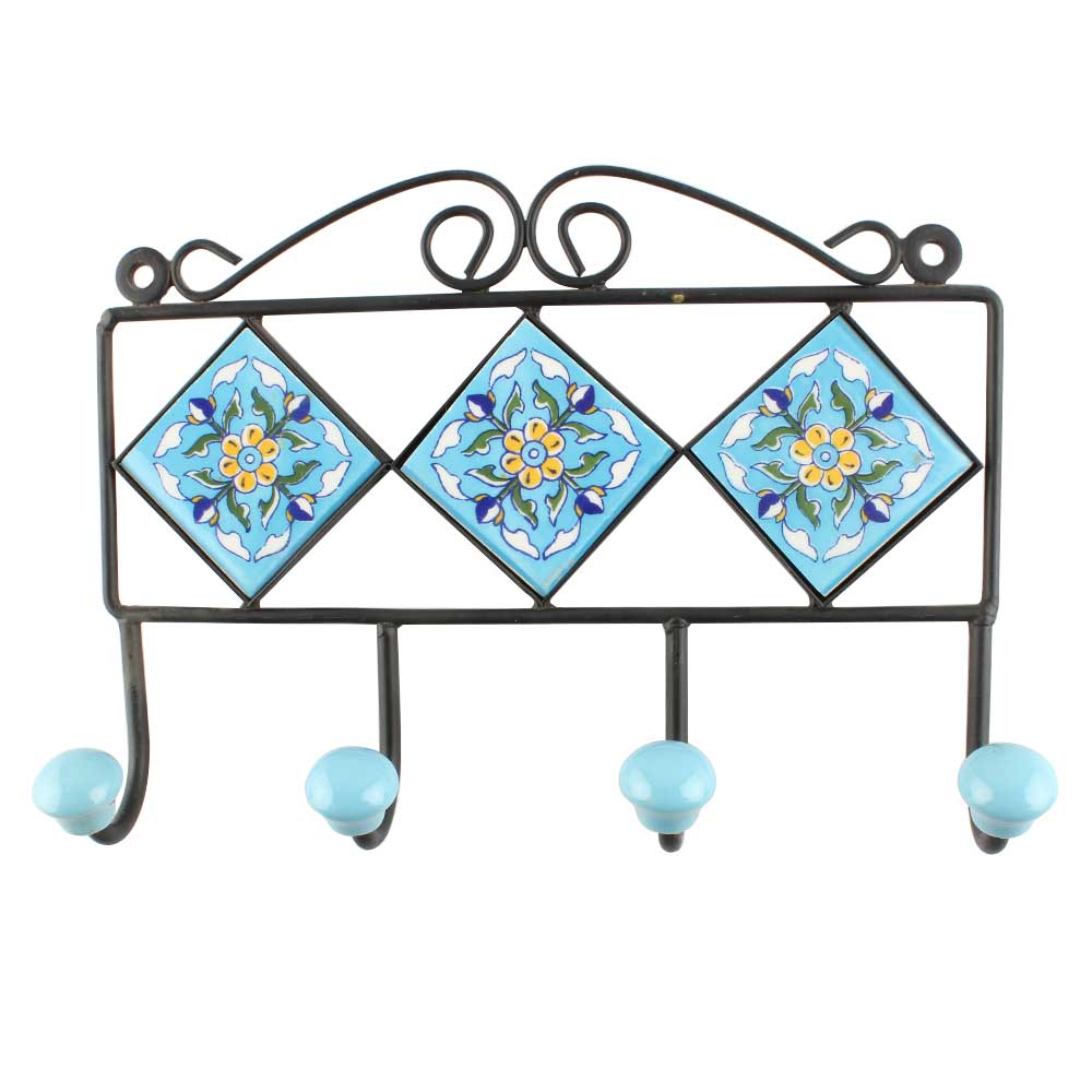 Turquoise Tulip Ceramic Floral Tiles Hook. When Put on Wall or Cabinet It is An Art in Itself. The Metal Part of this Hook is Black Powder Coated.