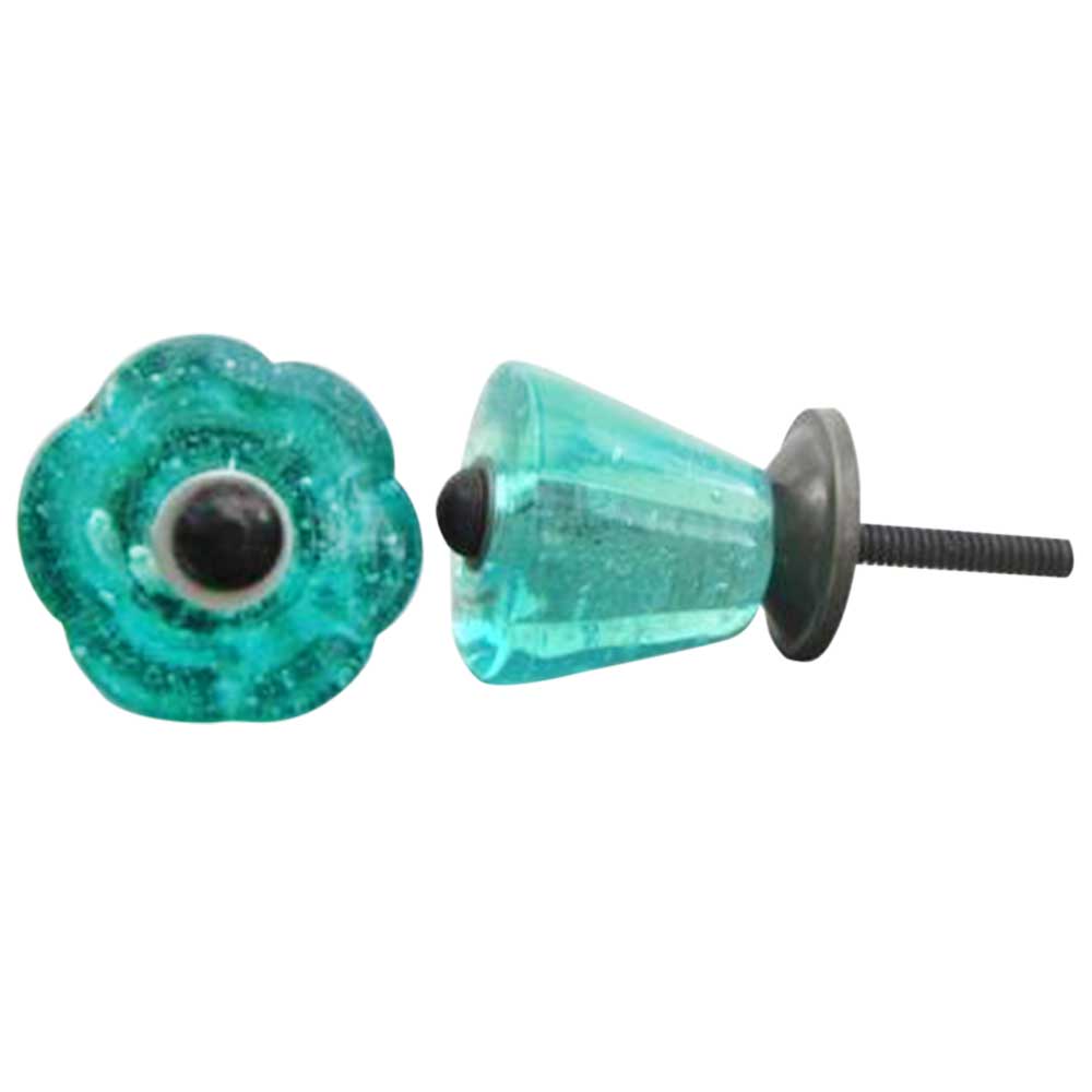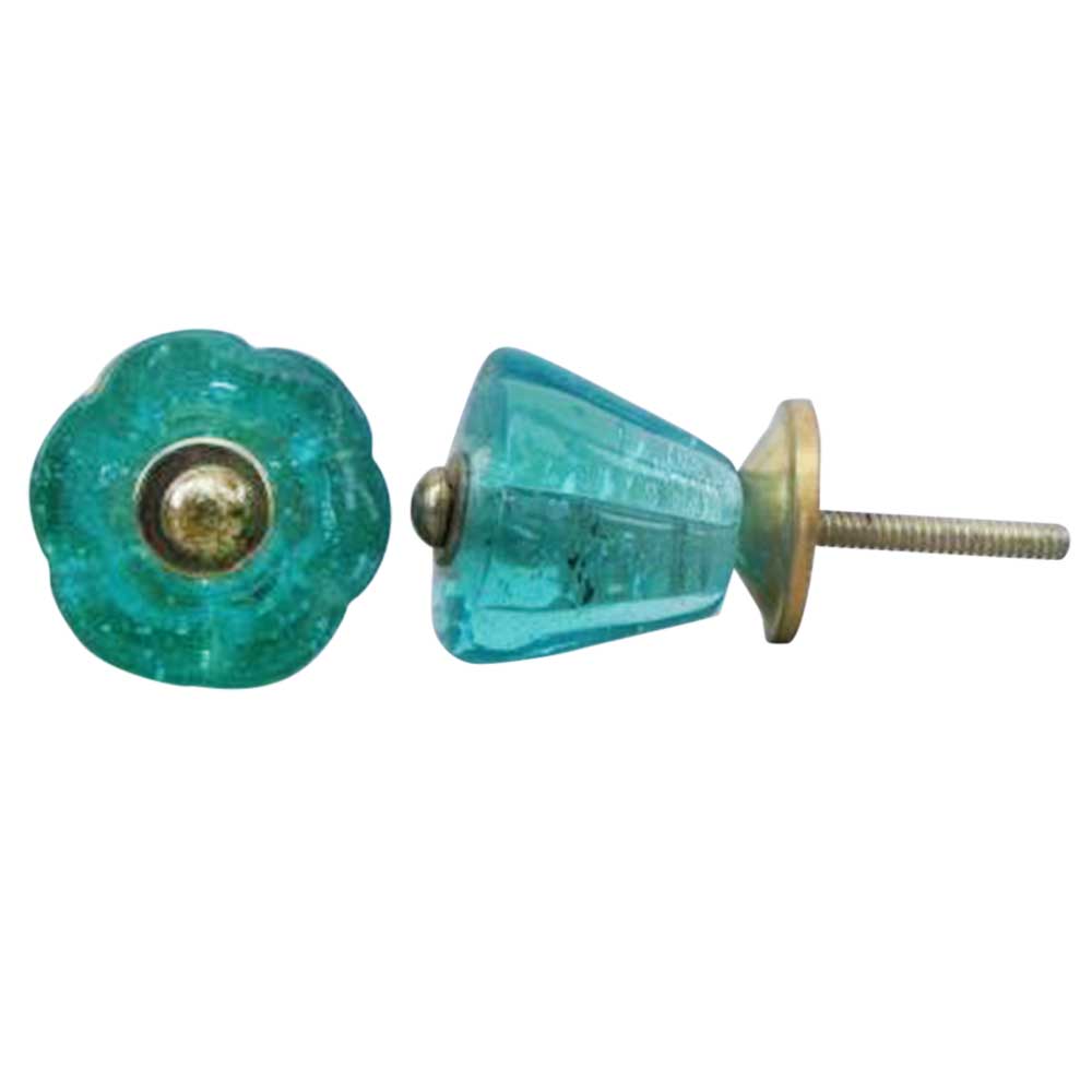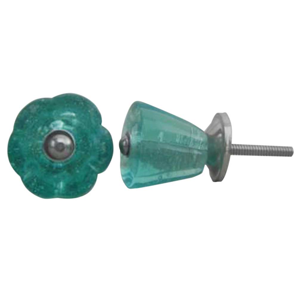 Turquoise Tulip Glass Knobs. Ideal for Drawer, Dresser, Cabinet, Wardrobe, Cupboard and Almirah.