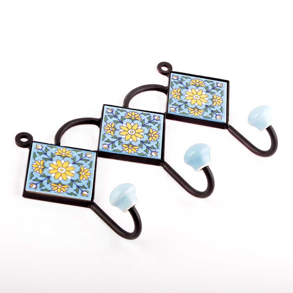 Turquoise Yellow Sunflower Tiles Hooks